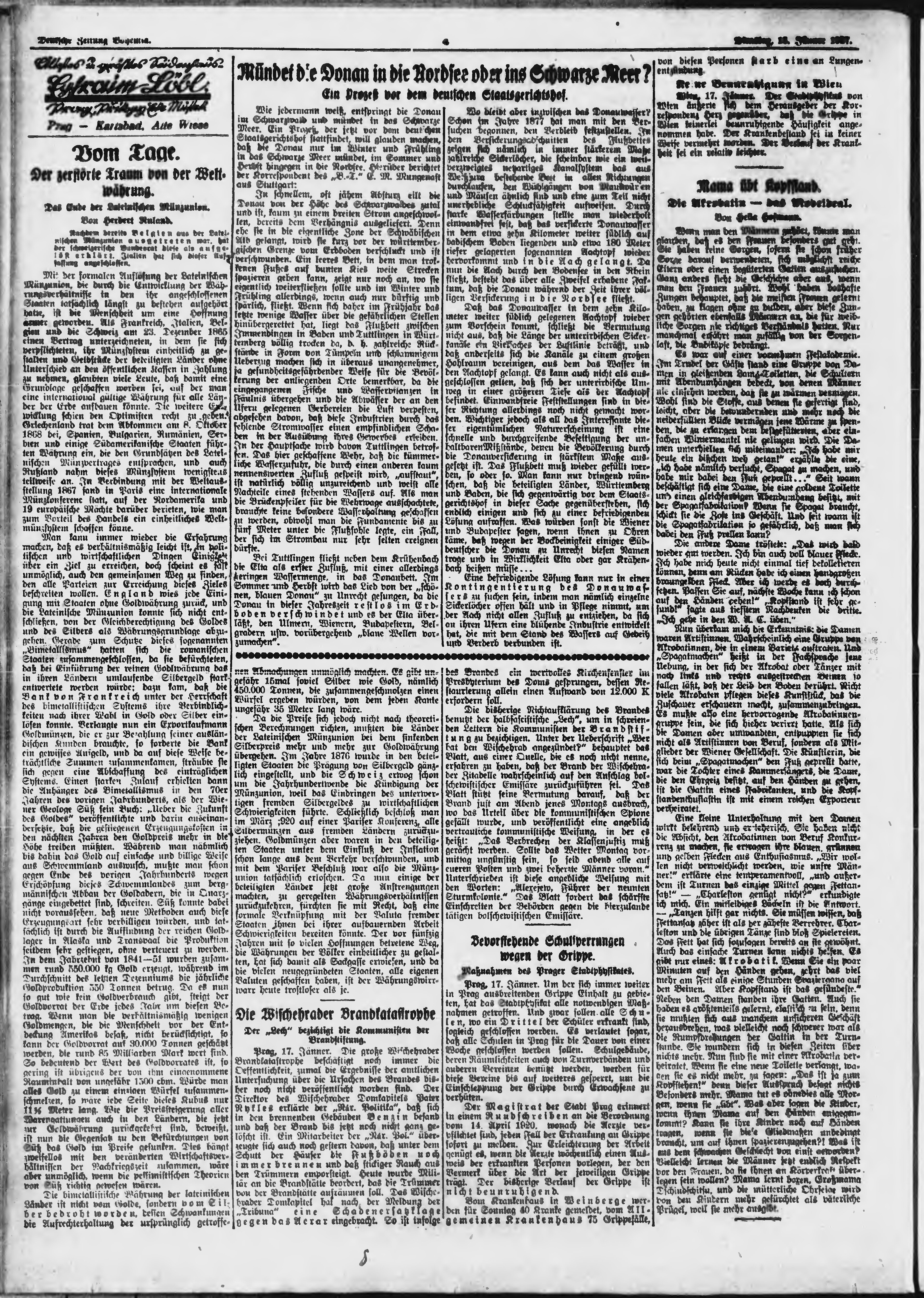* Datum vydání výtisku: 18.1.1927 Číslo výtisku: 14 Poznámky k výtisku: ranní vydání;