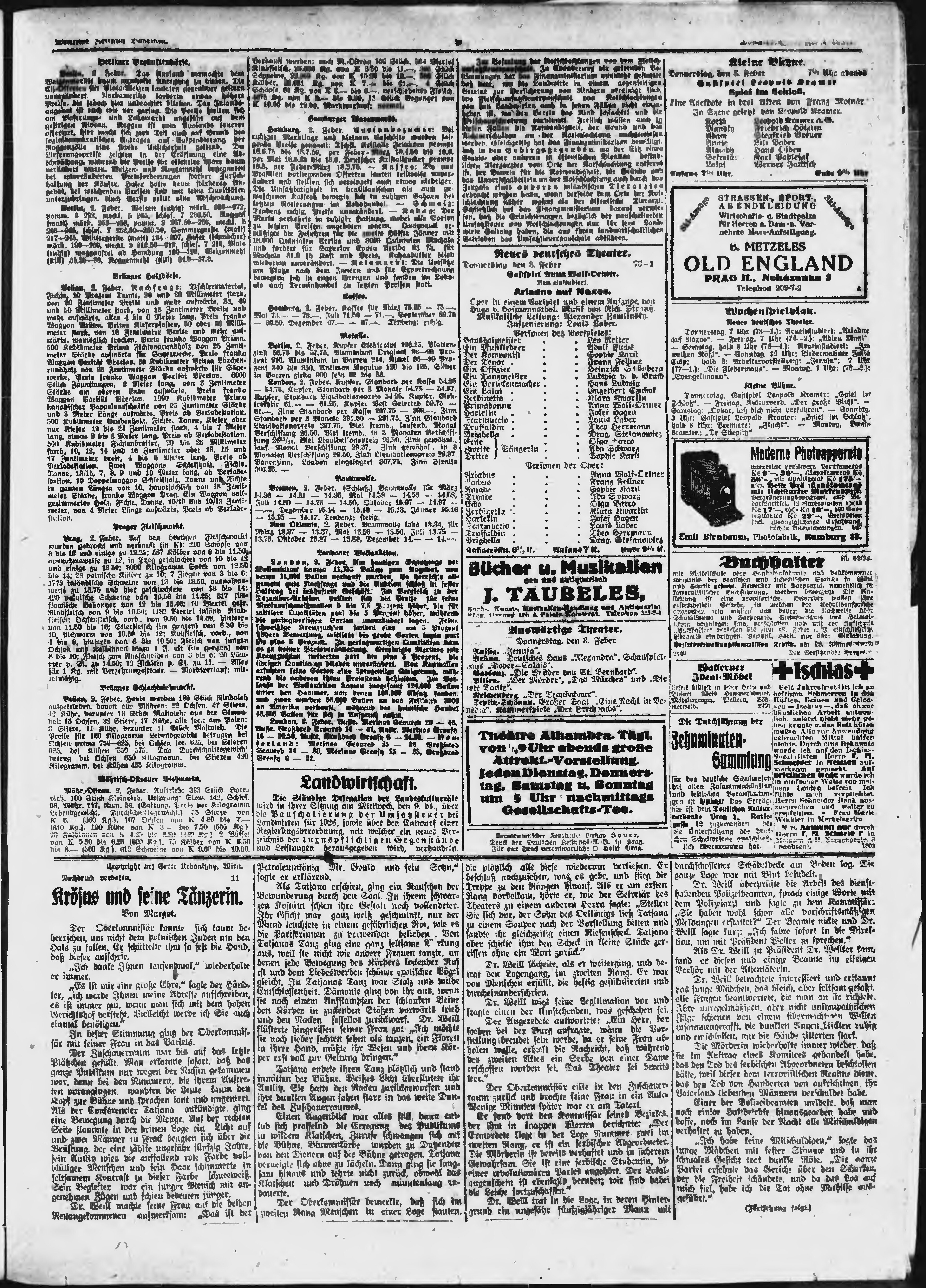 * Datum vydání výtisku: 3.2.1927 Číslo výtisku: 28 Poznámky k výtisku: ranní vydání;