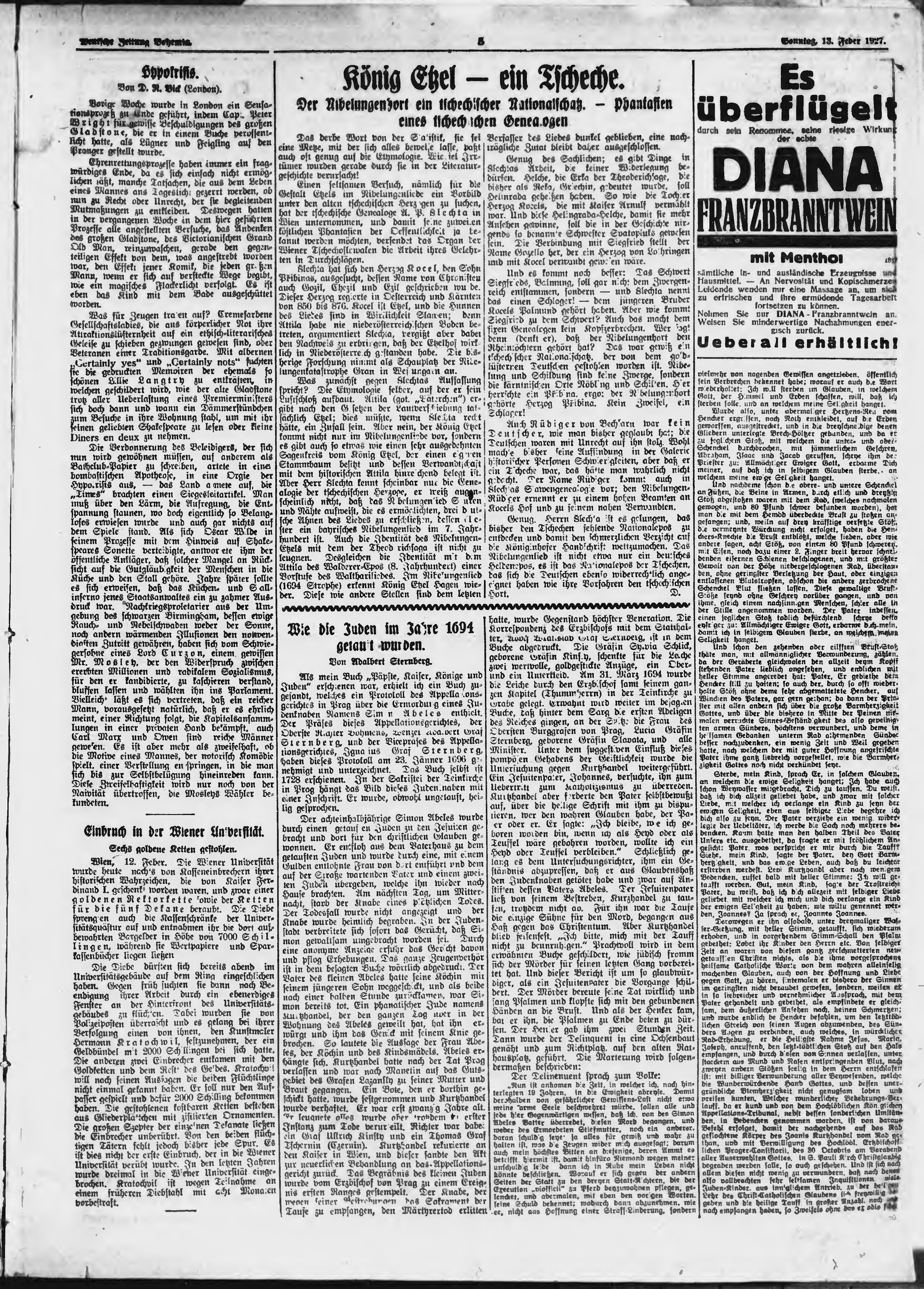 * Datum vydání výtisku: 13.2.1927 Číslo výtisku: 37 Poznámky k výtisku: ranní vydání;