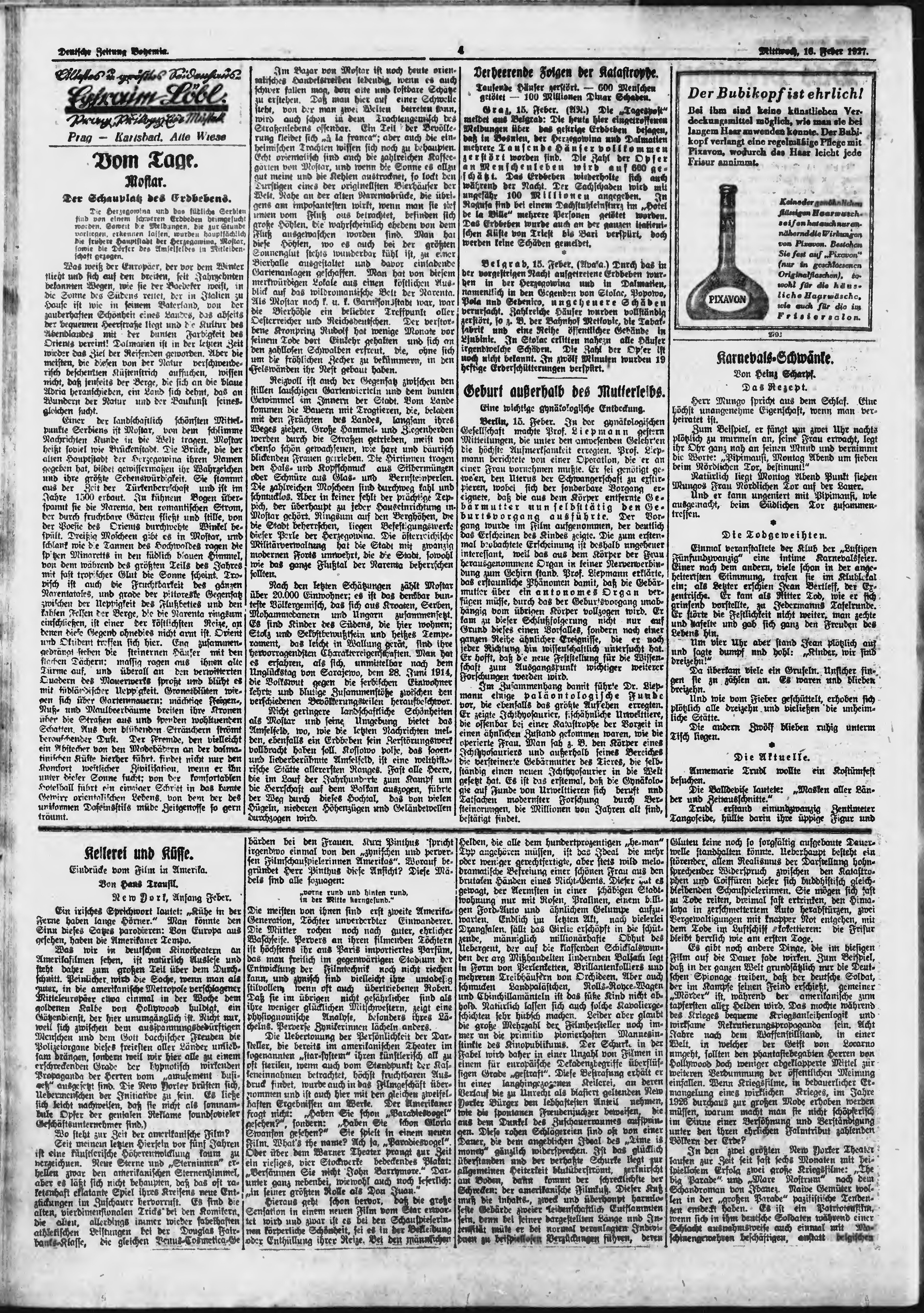 * Datum vydání výtisku: 16.2.1927 Číslo výtisku: 39 Poznámky k výtisku: ranní vydání;