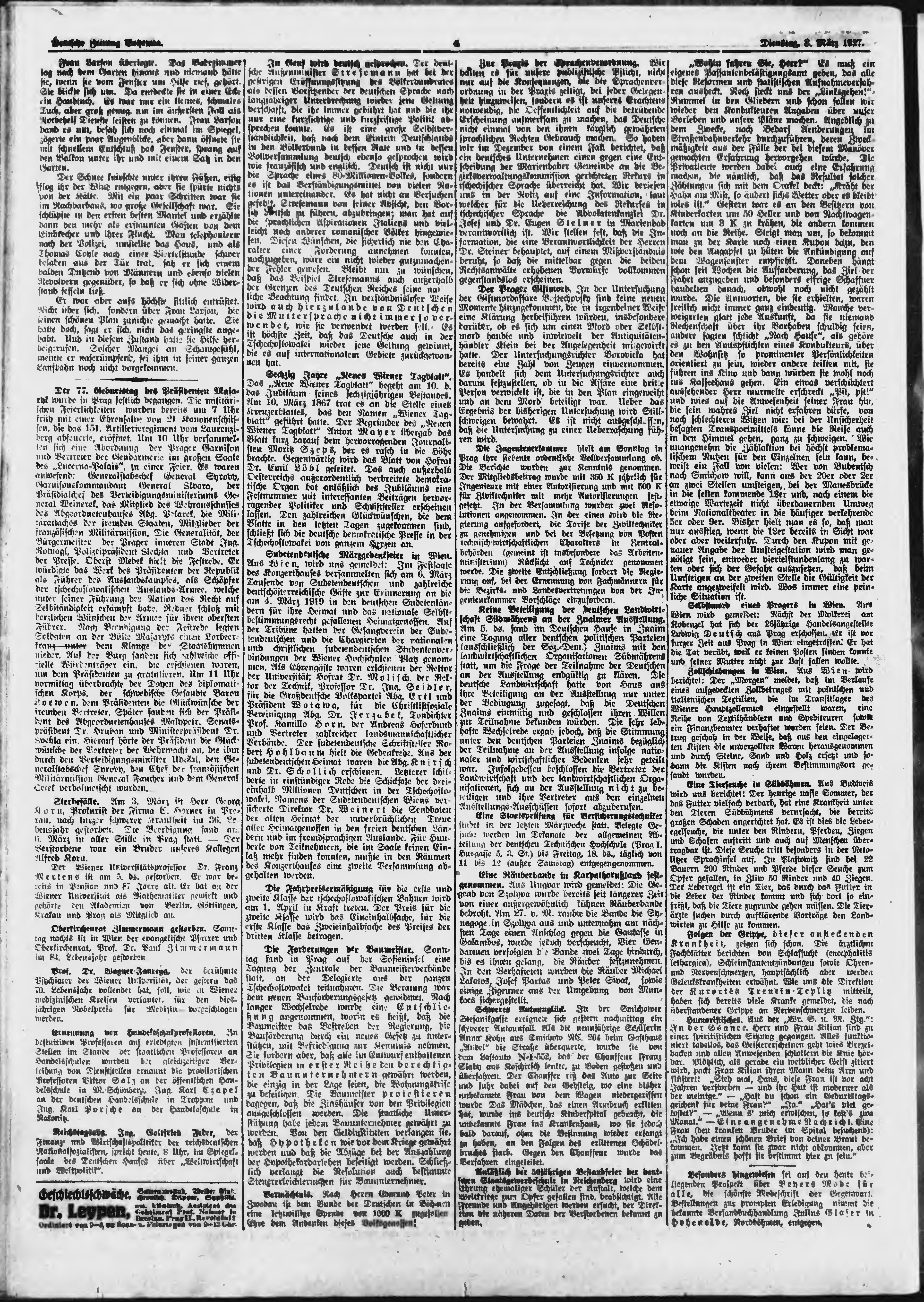 * Datum vydání výtisku: 8.3.1927 Číslo výtisku: 56 Poznámky k výtisku: ranní vydání;