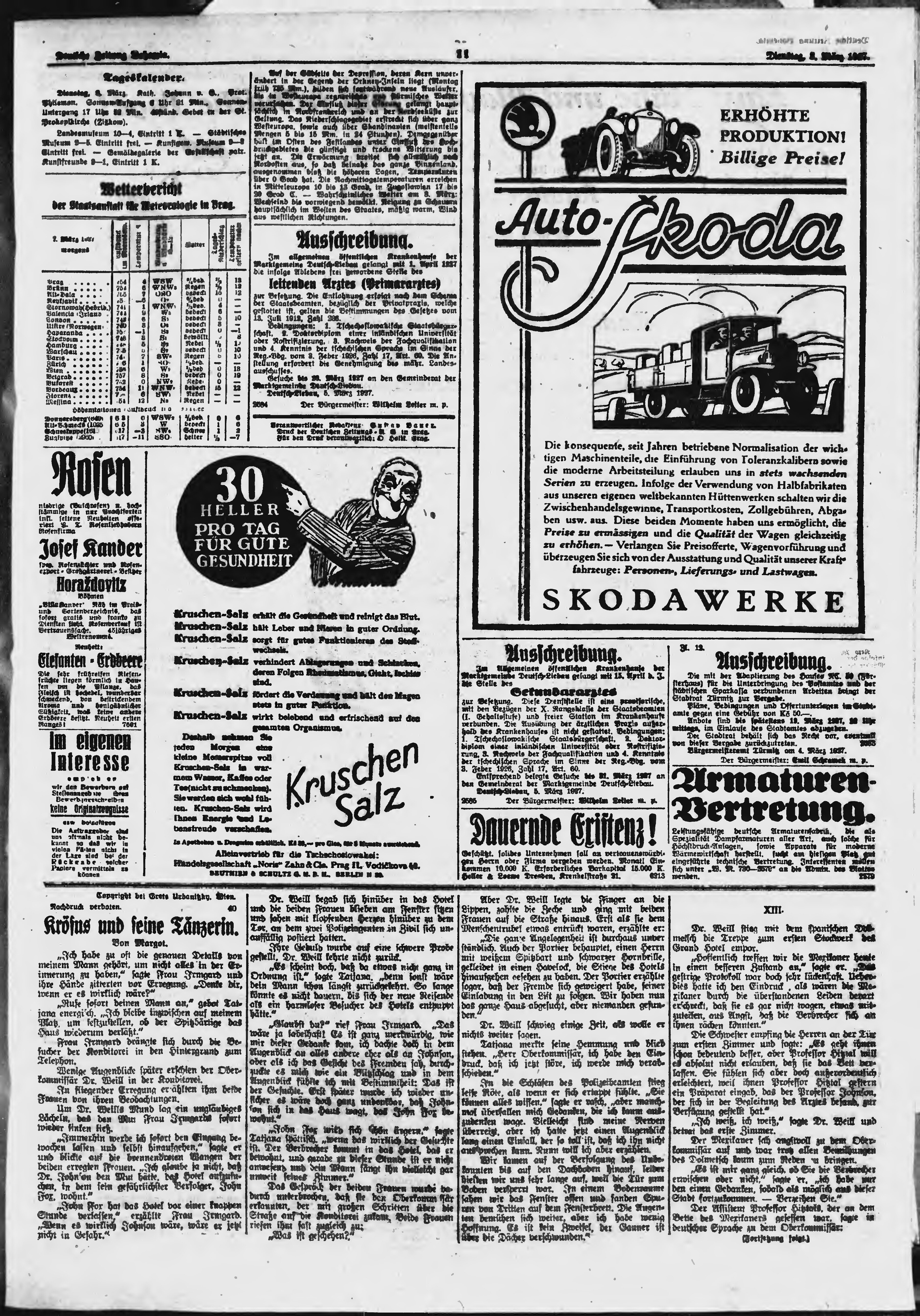 * Datum vydání výtisku: 8.3.1927 Číslo výtisku: 56 Poznámky k výtisku: ranní vydání;