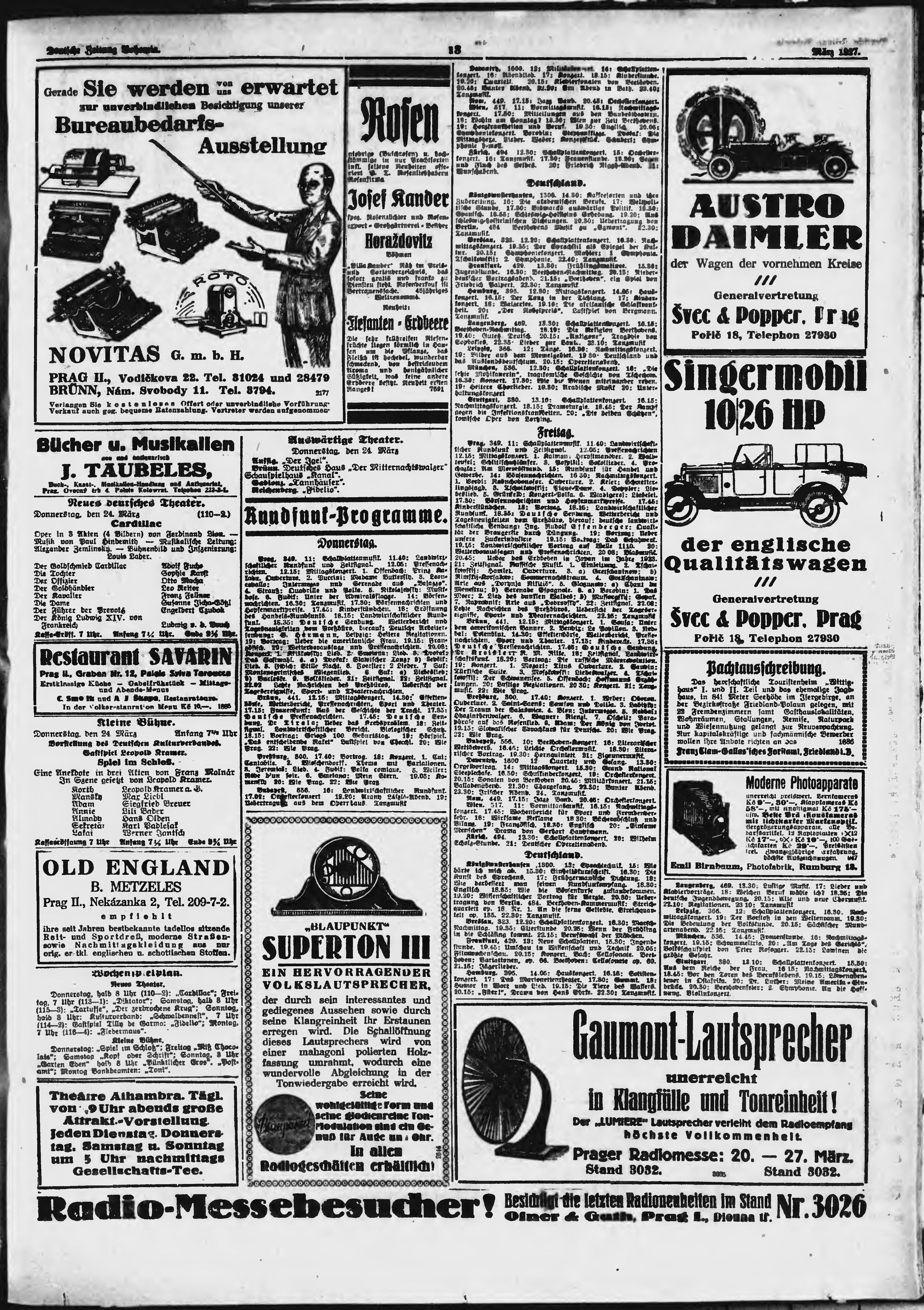 * Datum vydání výtisku: 24.3.1927 Číslo výtisku: 70 Poznámky k výtisku: ranní vydání;