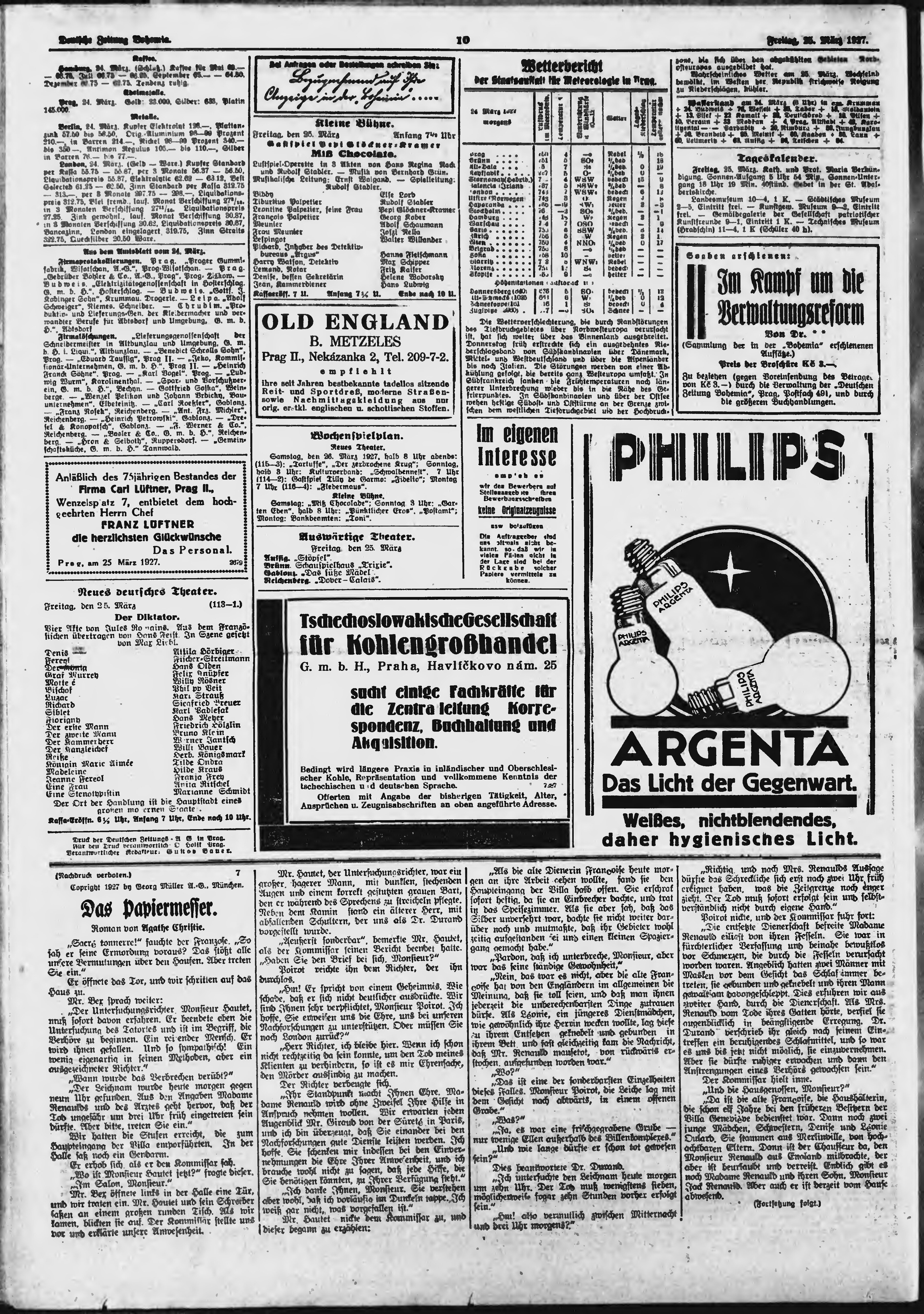 * Datum vydání výtisku: 25.3.1927 Číslo výtisku: 71 Poznámky k výtisku: ranní vydání;