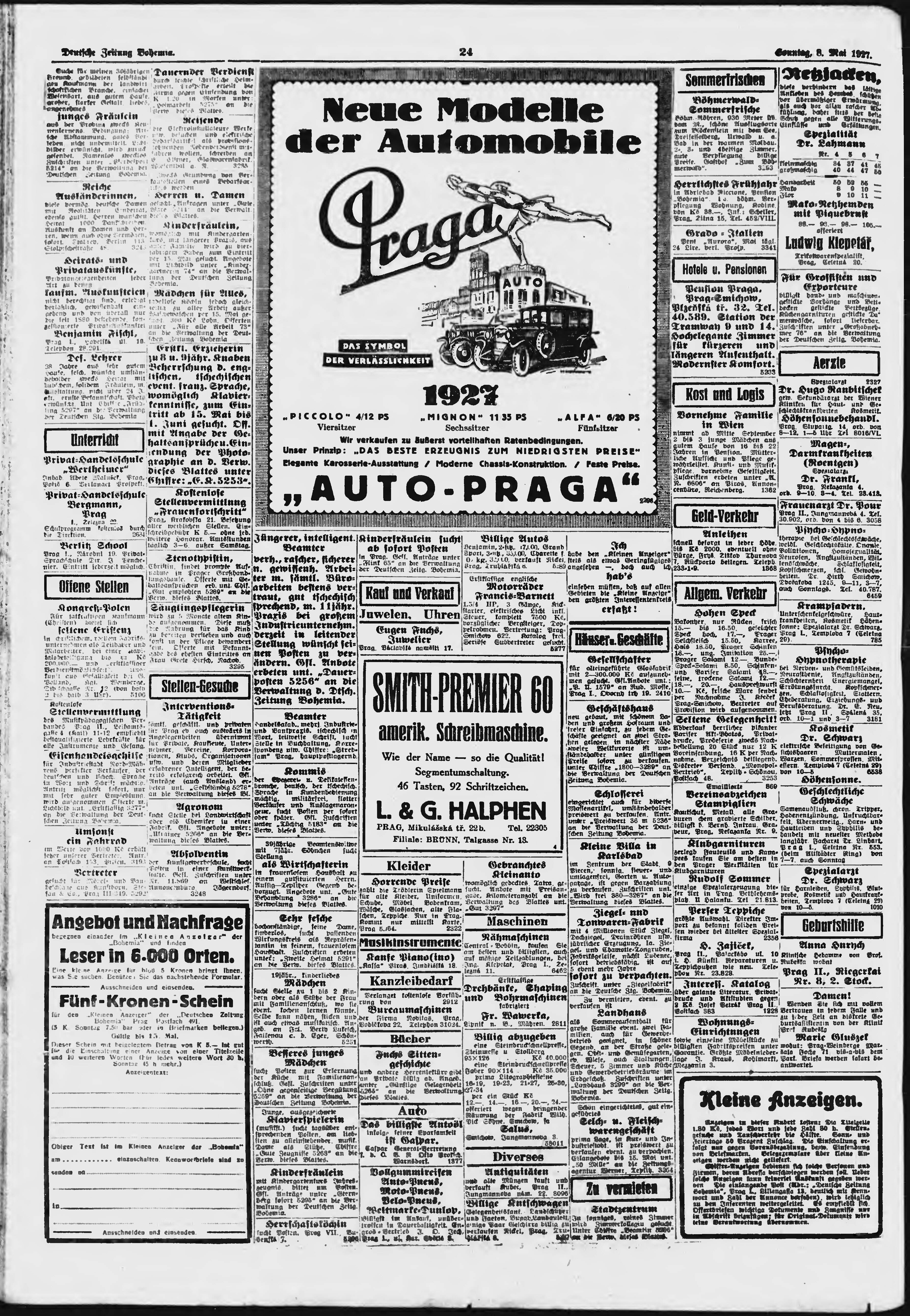 * Datum vydání výtisku: 8.5.1927 Číslo výtisku: 109 Poznámky k výtisku: ranní vydání;