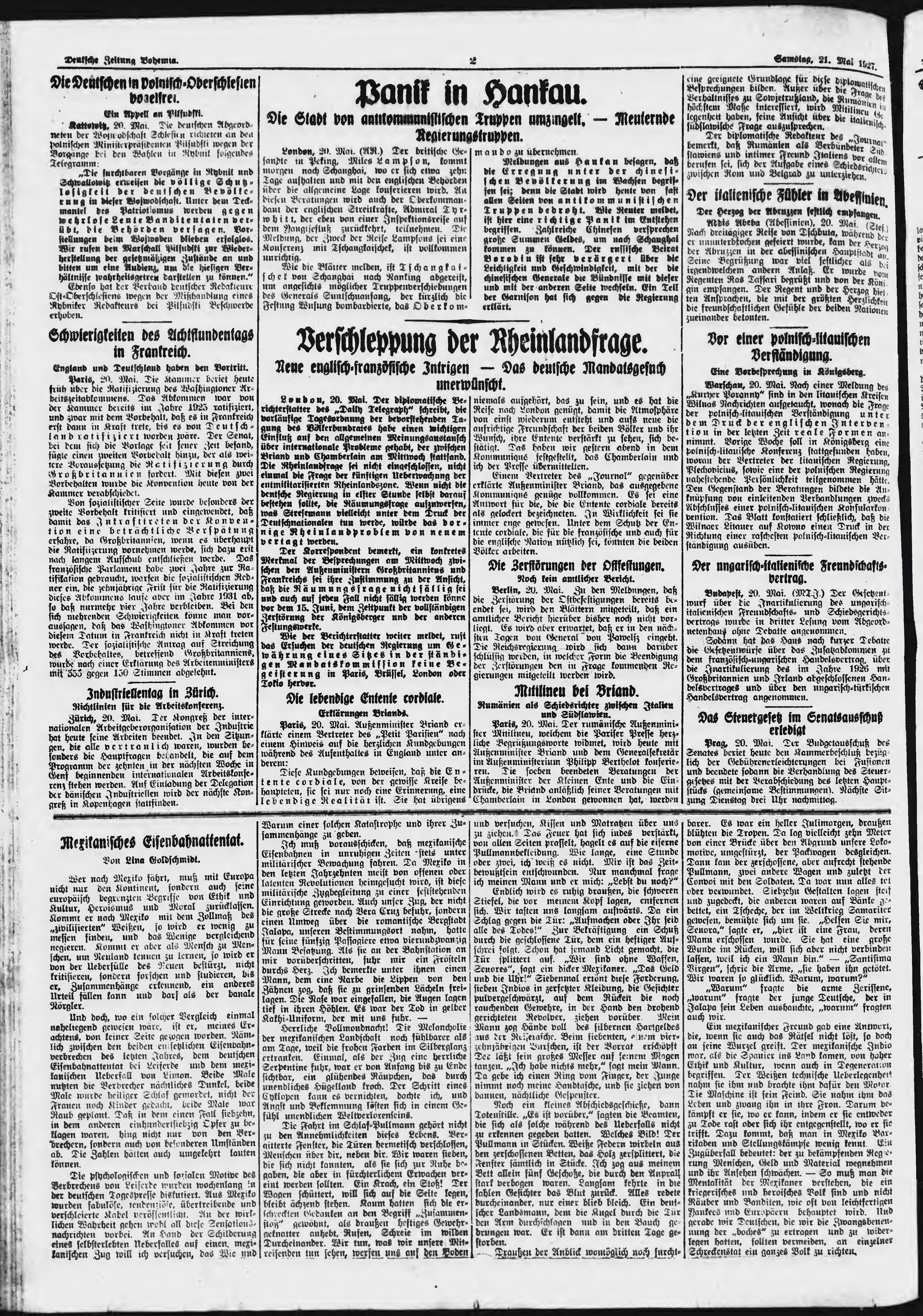 * Datum vydání výtisku: 21.5.1927 Číslo výtisku: 120 Poznámky k výtisku: ranní vydání;