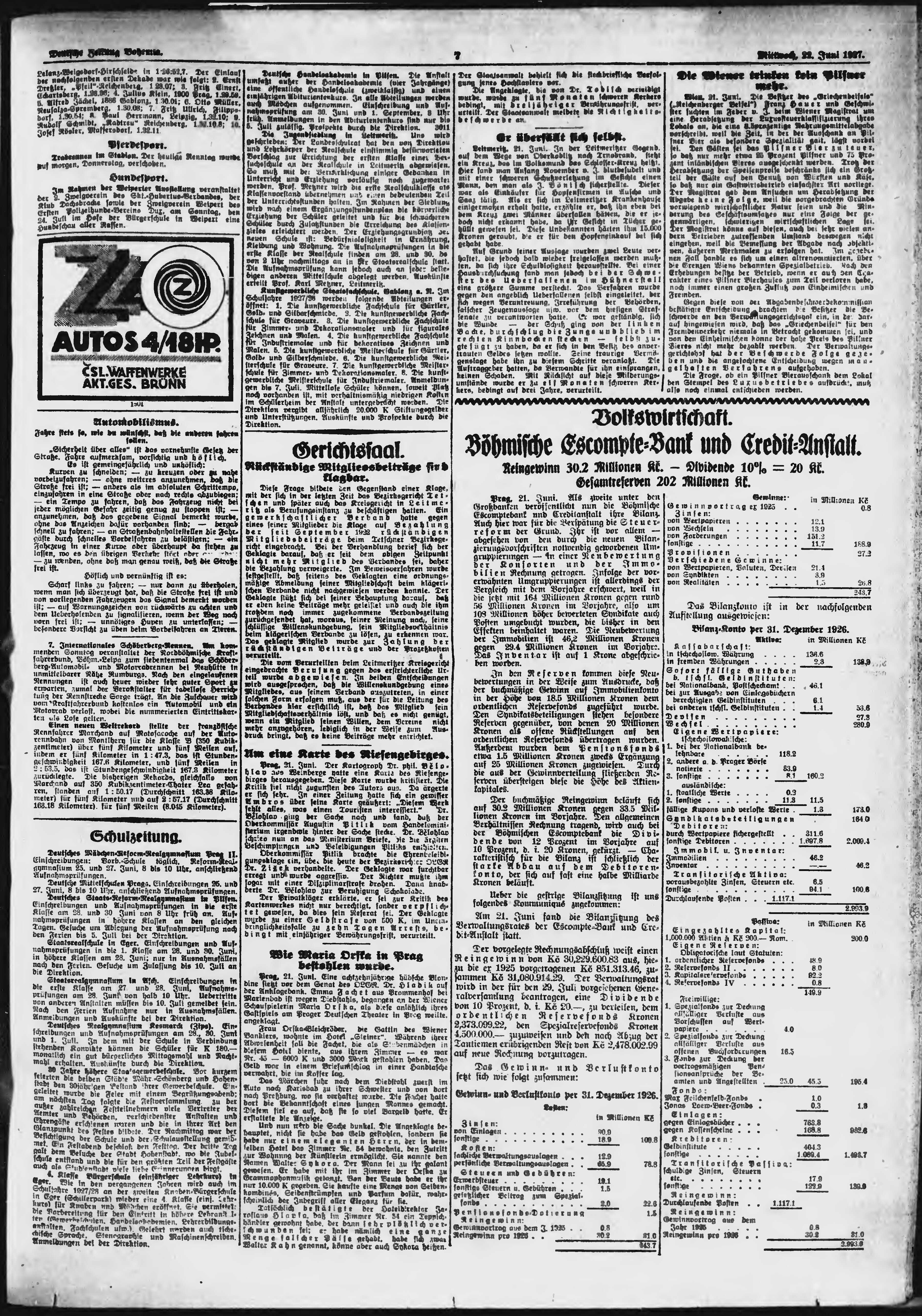 * Datum vydání výtisku: 22.6.1927 Číslo výtisku: 147 Poznámky k výtisku: ranní vydání;