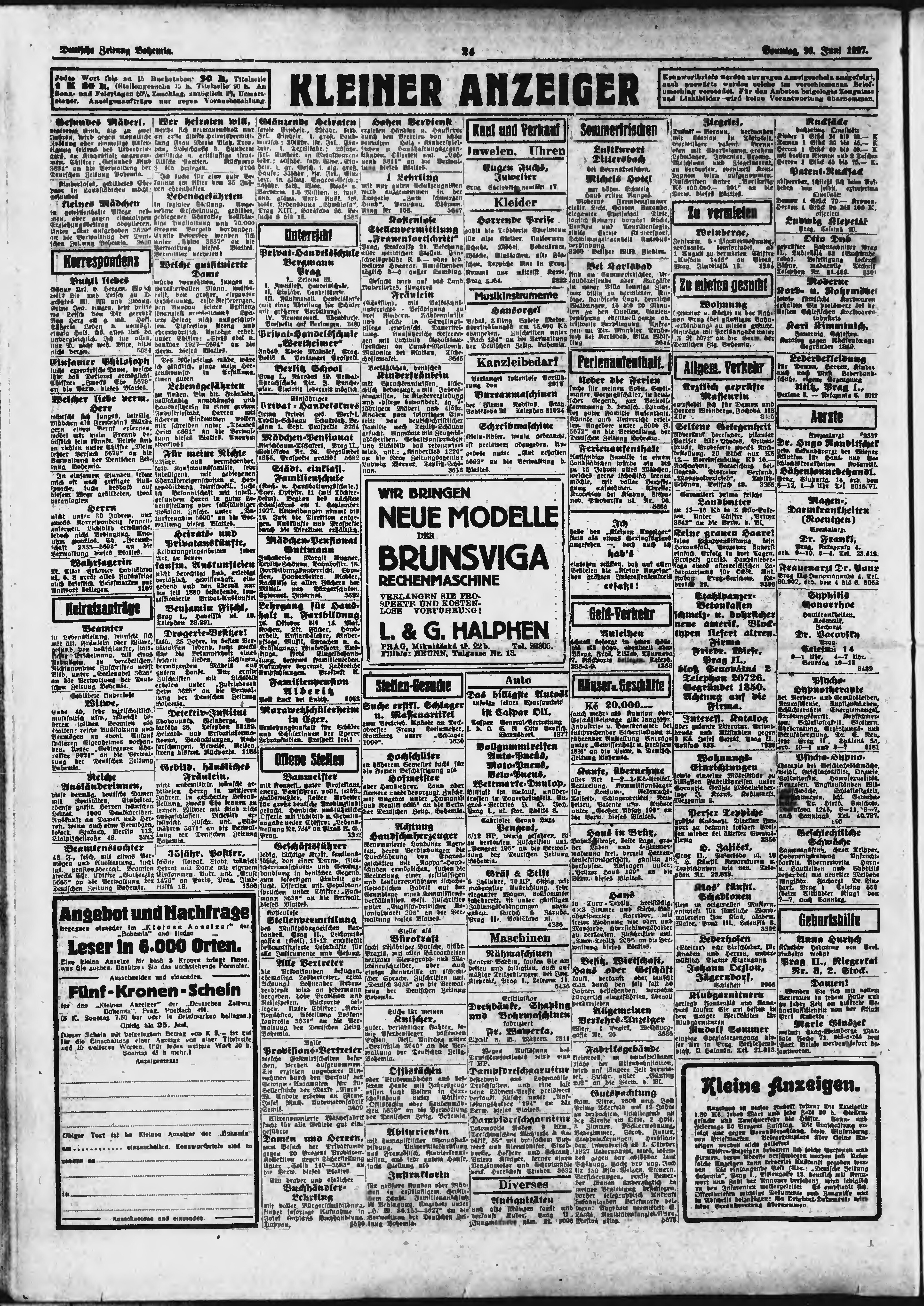 * Datum vydání výtisku: 26.6.1927 Číslo výtisku: 151 Poznámky k výtisku: ranní vydání;