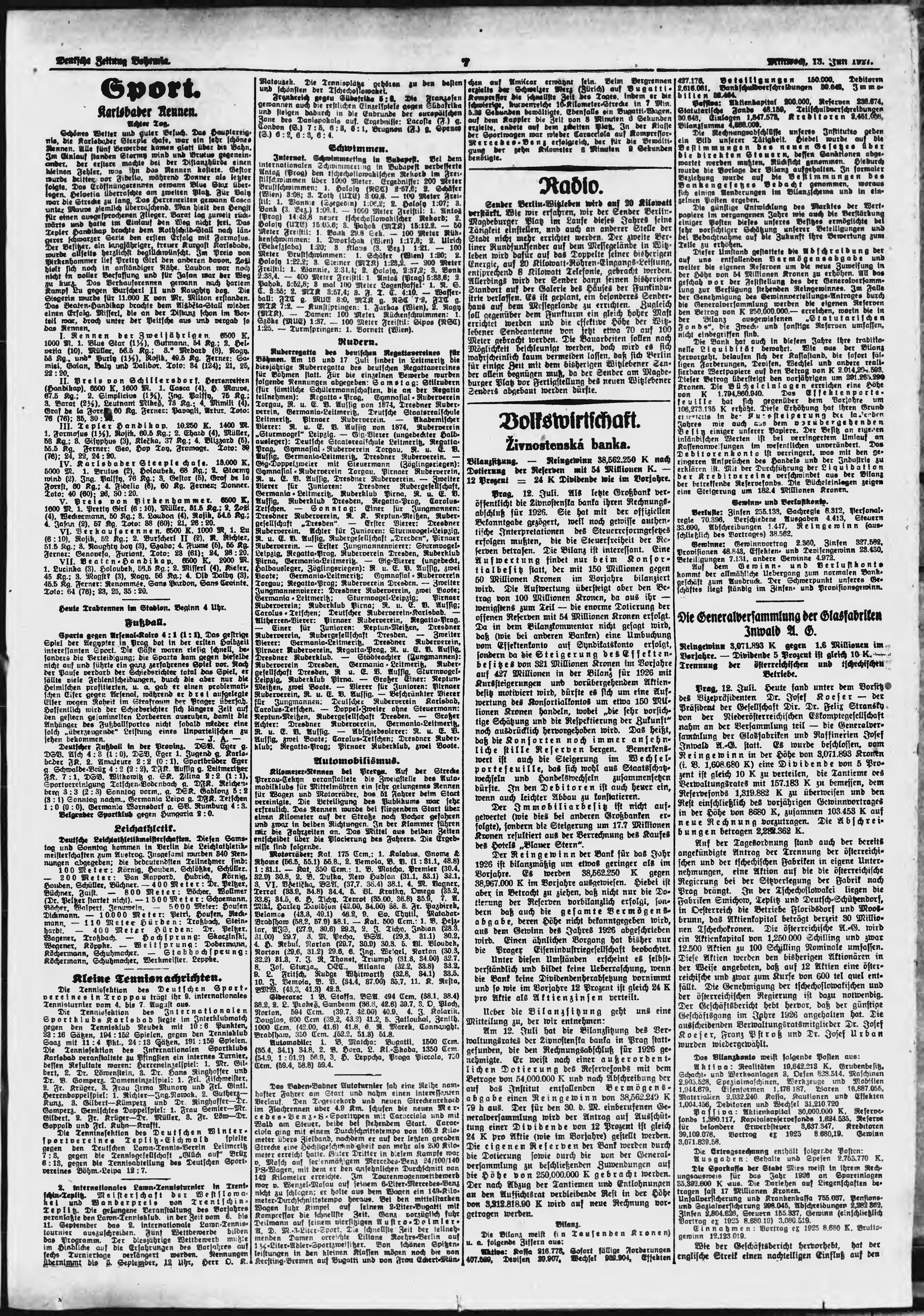 * Datum vydání výtisku: 13.7.1927 Číslo výtisku: 165 Poznámky k výtisku: ranní vydání;