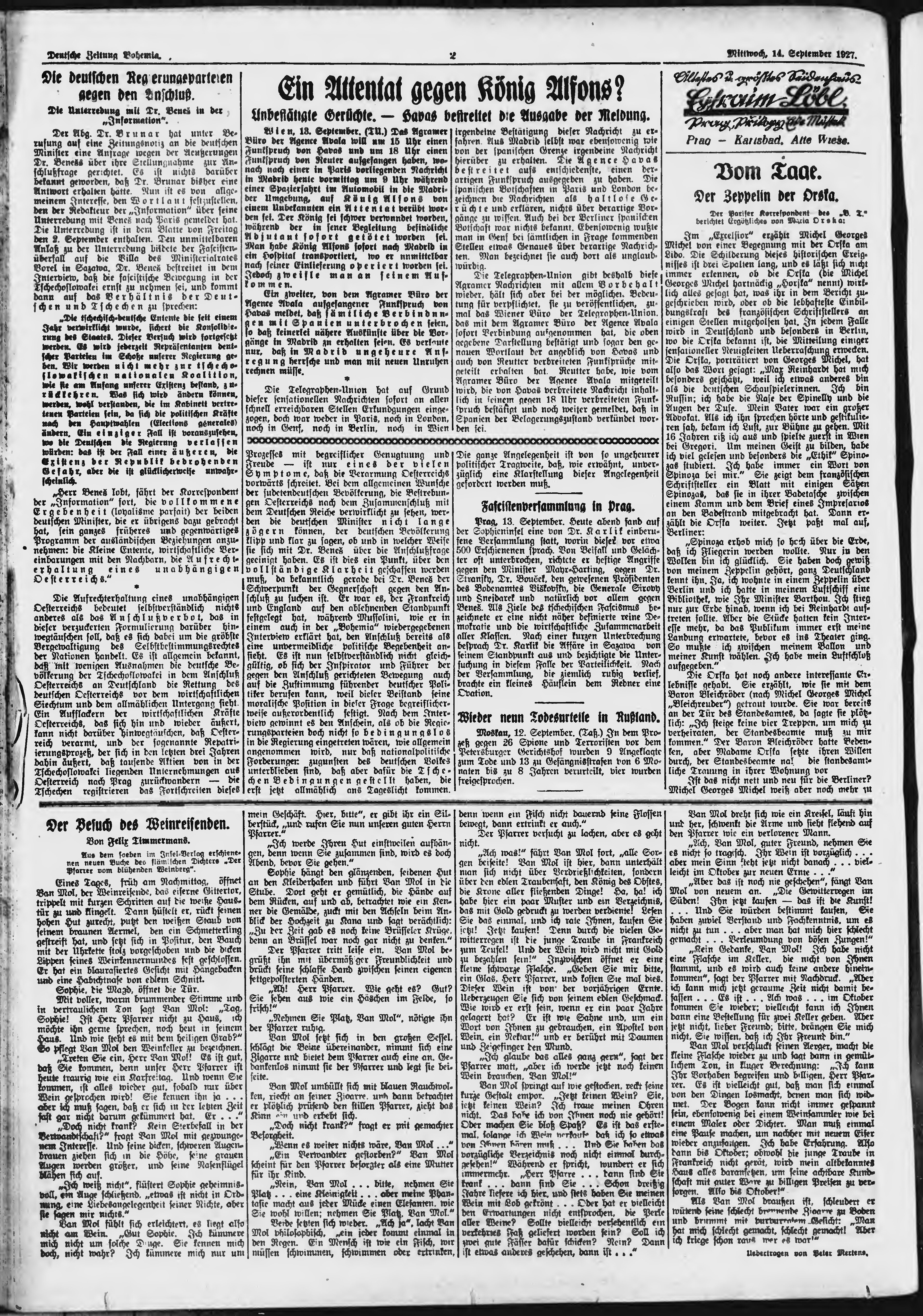 * Datum vydání výtisku: 14.9.1927 Číslo výtisku: 218 Poznámky k výtisku: ranní vydání;