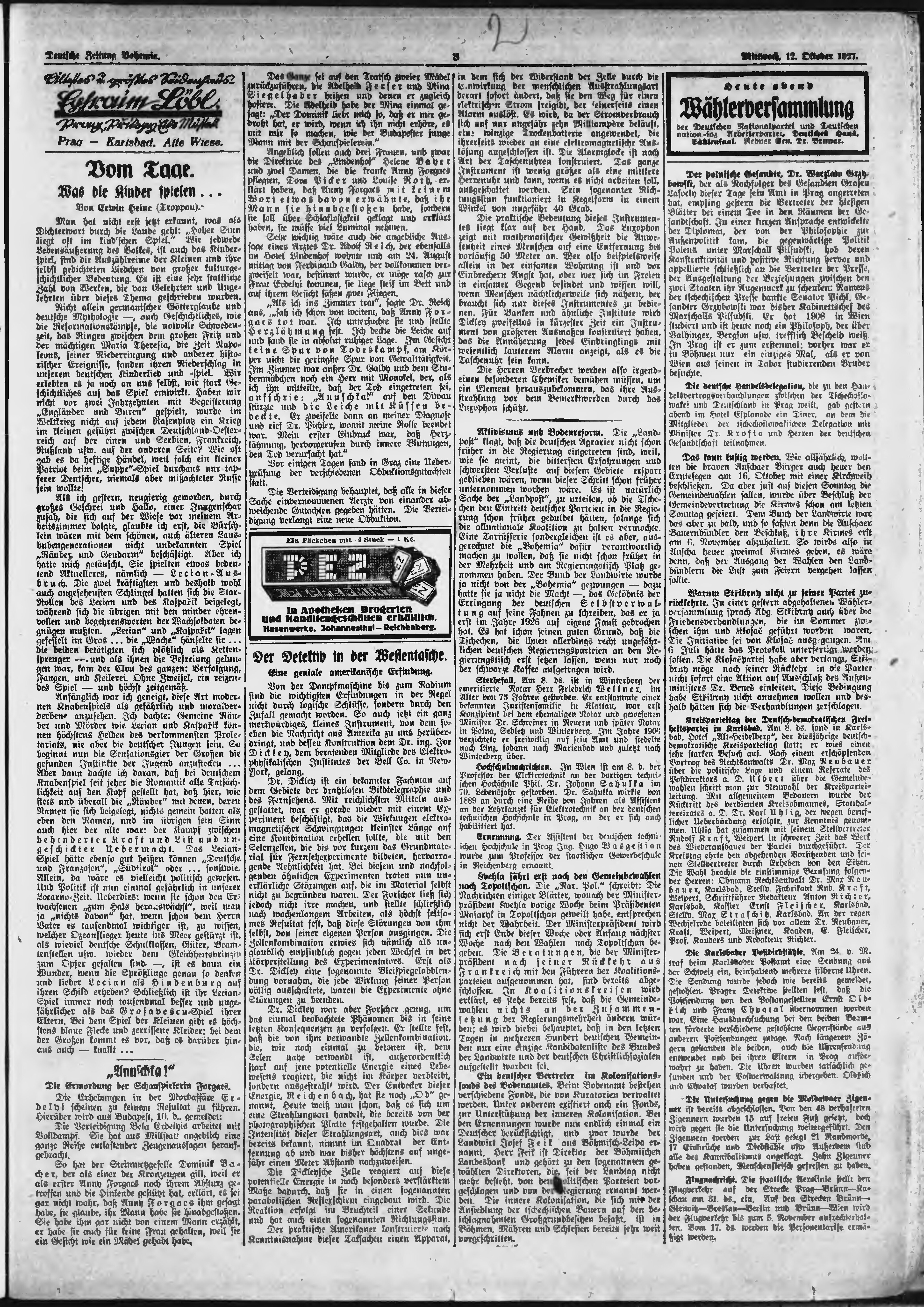 * Datum vydání výtisku: 12.10.1927 Číslo výtisku: 242 Poznámky k výtisku: ranní vydání;