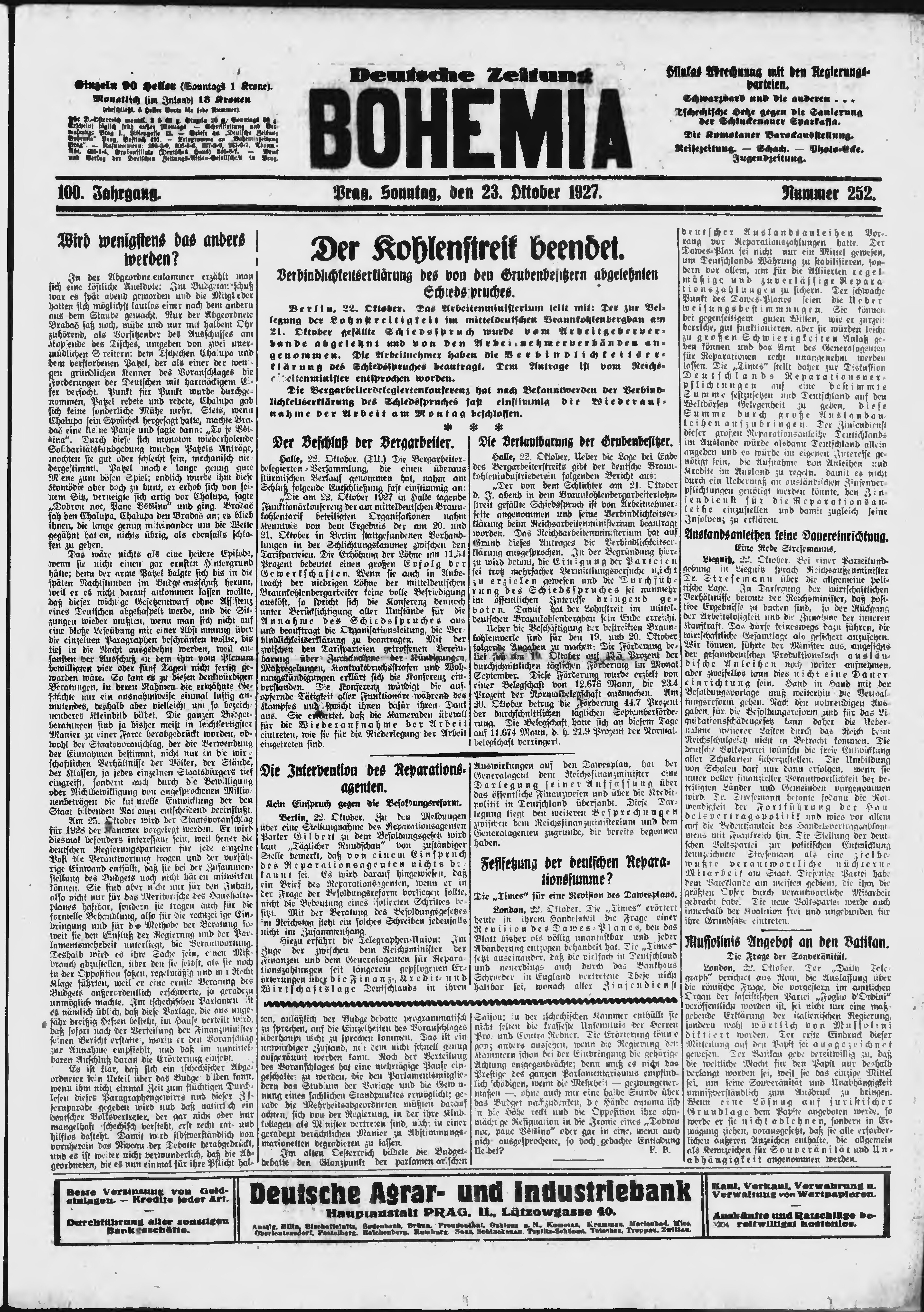 * Datum vydání výtisku: 23.10.1927 Číslo výtisku: 252 Poznámky k výtisku: ranní vydání;