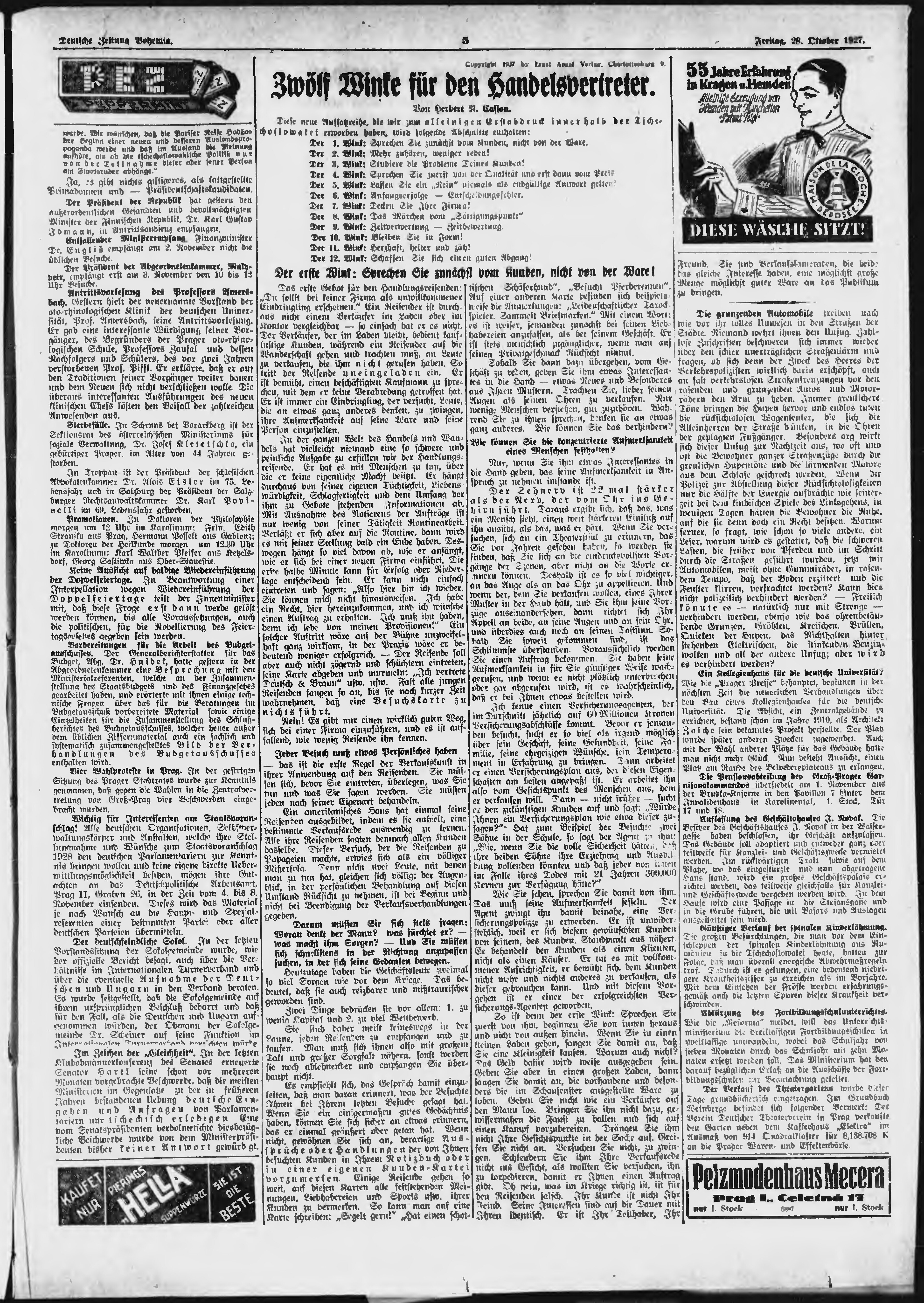 * Datum vydání výtisku: 28.10.1927 Číslo výtisku: 256 Poznámky k výtisku: ranní vydání;
