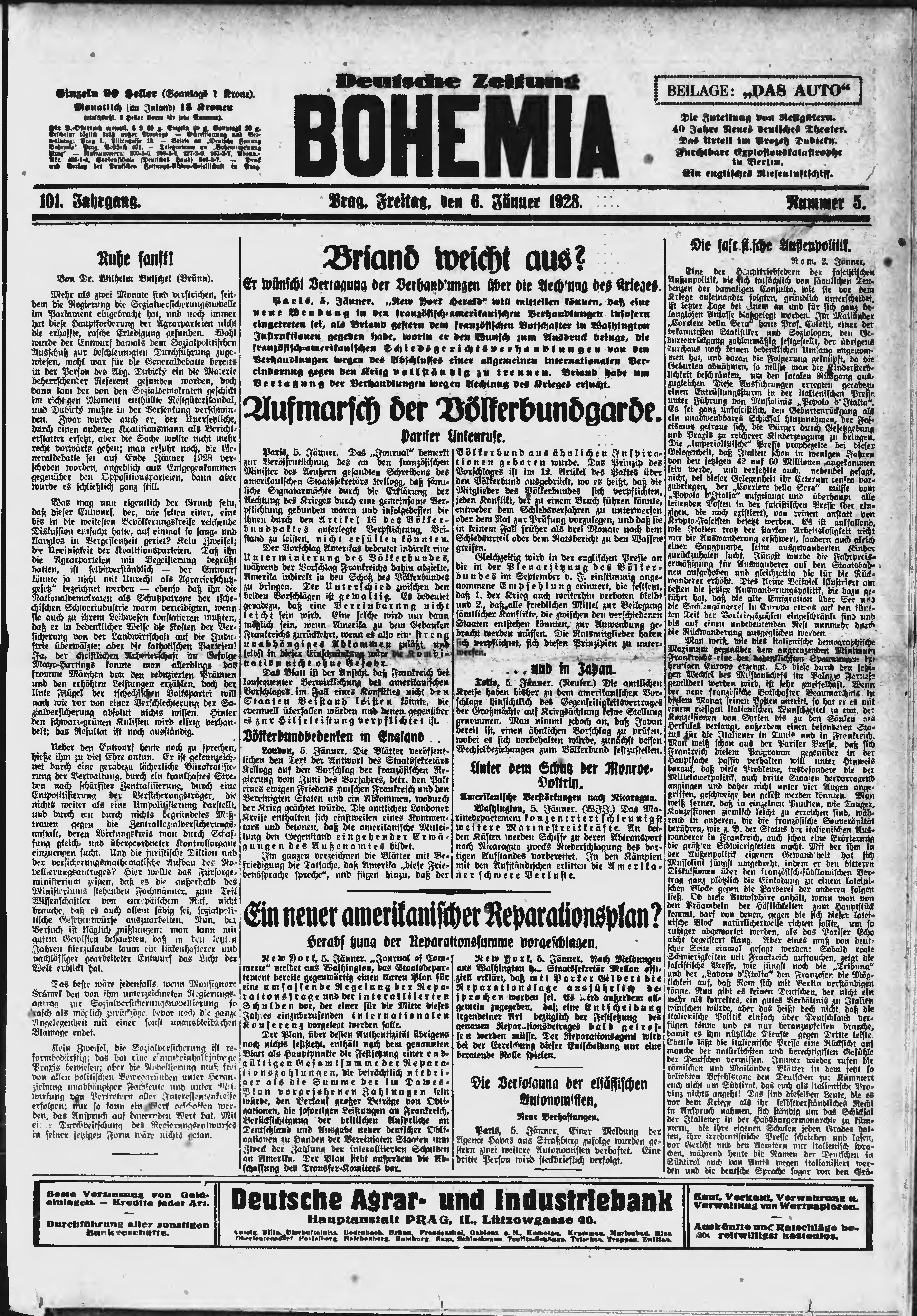 * Datum vydání výtisku: 6.1.1928 Číslo výtisku: 5 Poznámky k výtisku: ranní vydání;