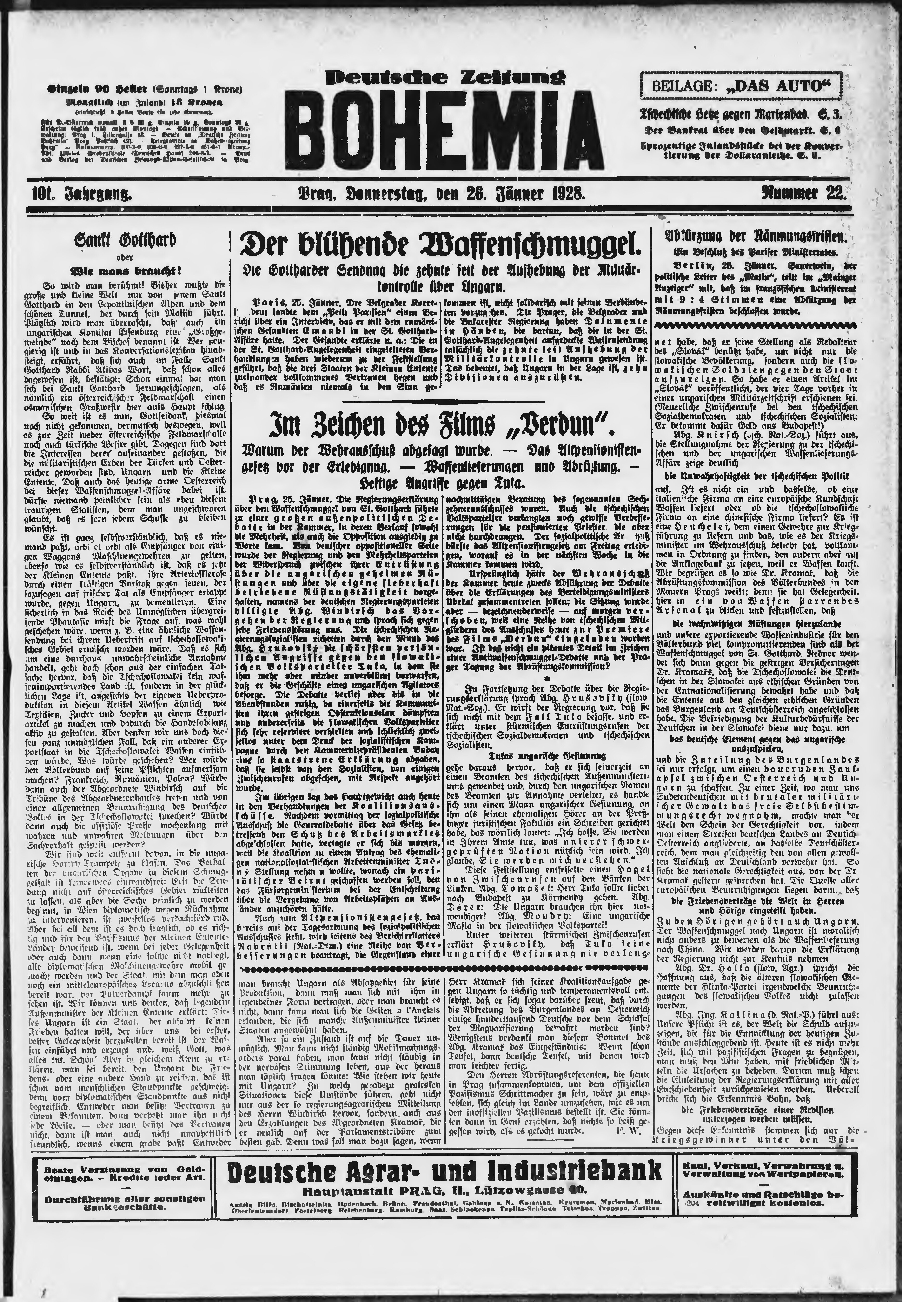 * Datum vydání výtisku: 26.1.1928 Číslo výtisku: 22 Poznámky k výtisku: ranní vydání;