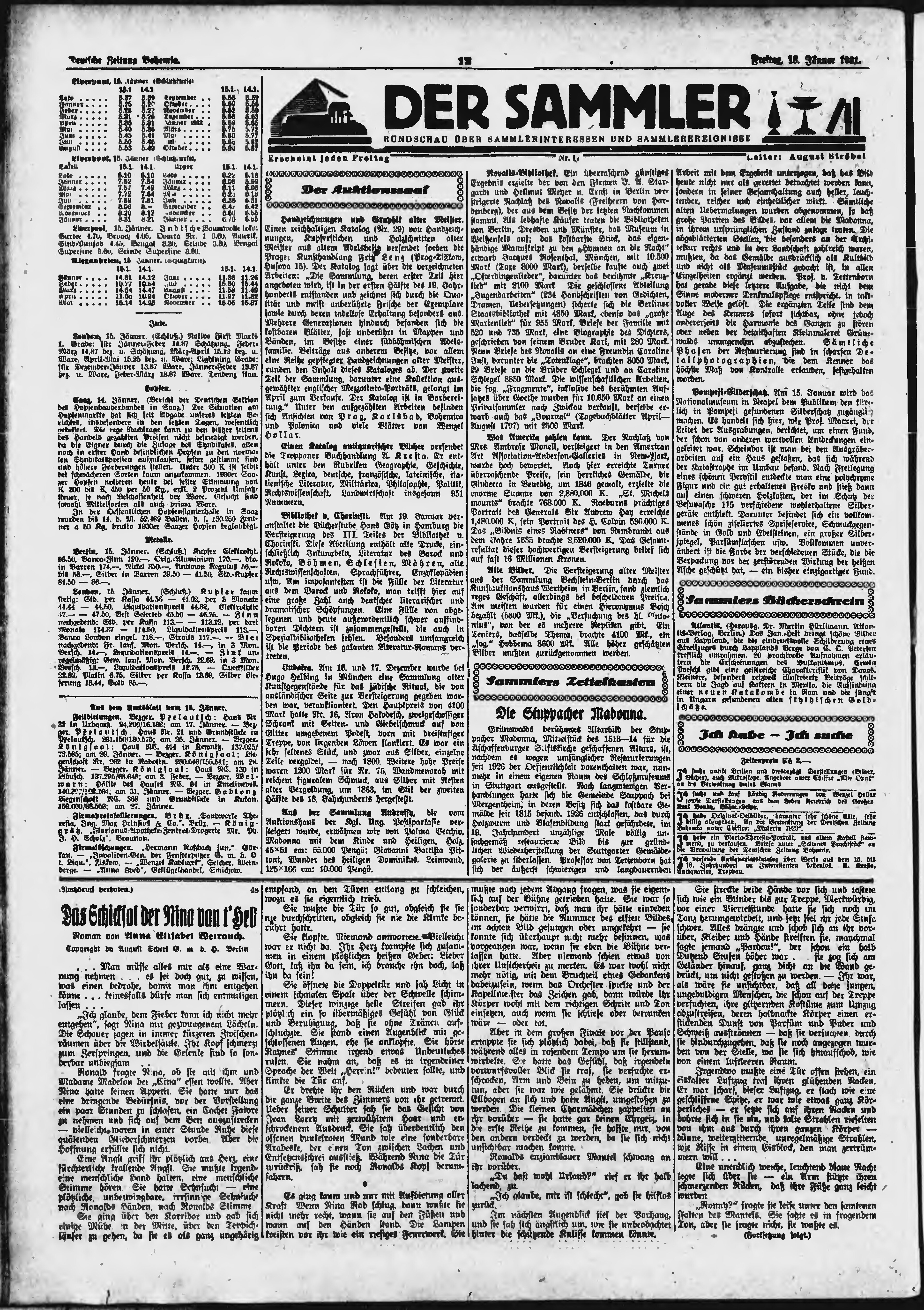 * Datum vydání výtisku: 16.1.1931 Číslo výtisku: 14 Poznámky k výtisku: ranní vydání;