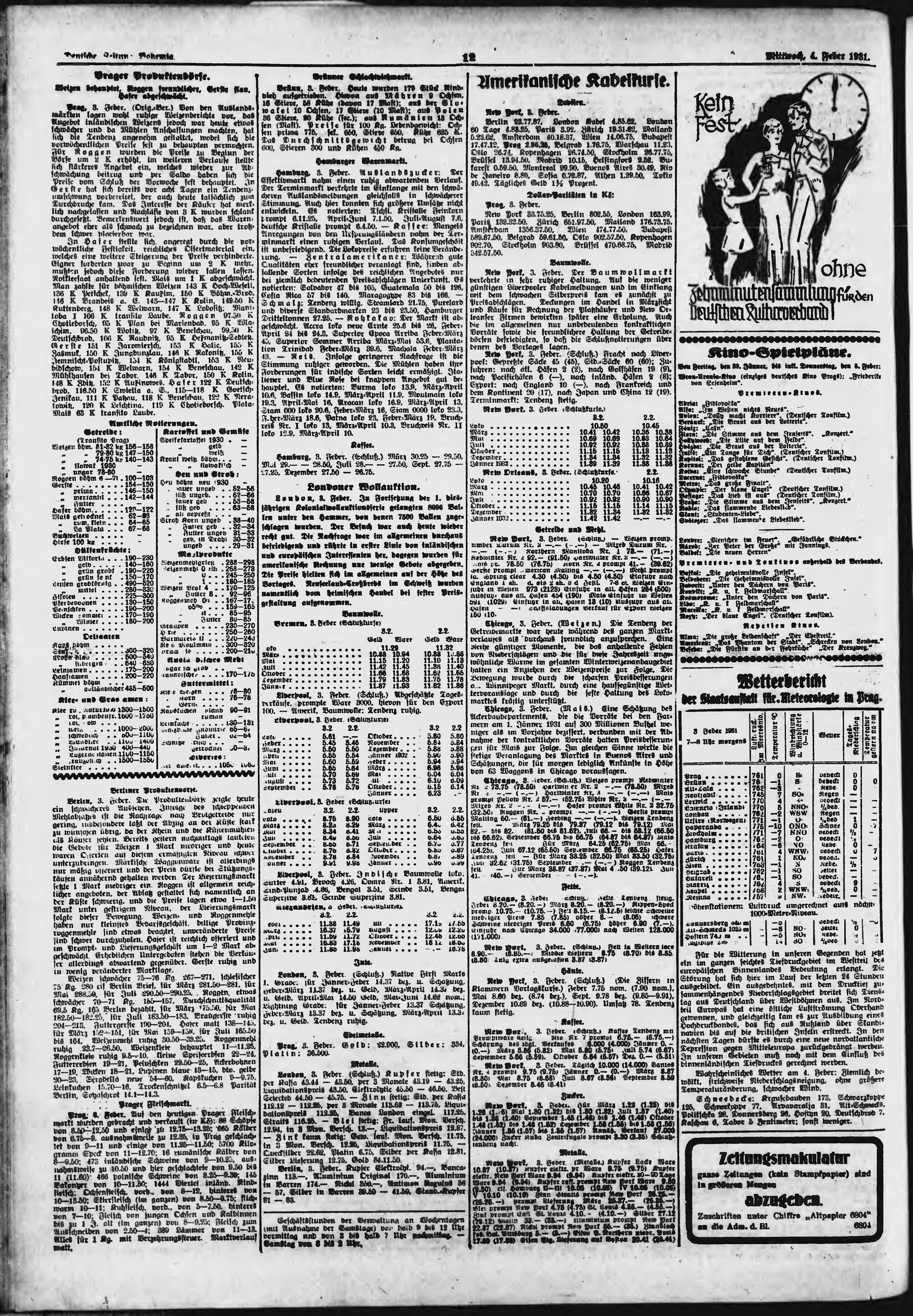 * Datum vydání výtisku: 4.2.1931 Číslo výtisku: 30 Poznámky k výtisku: ranní vydání;