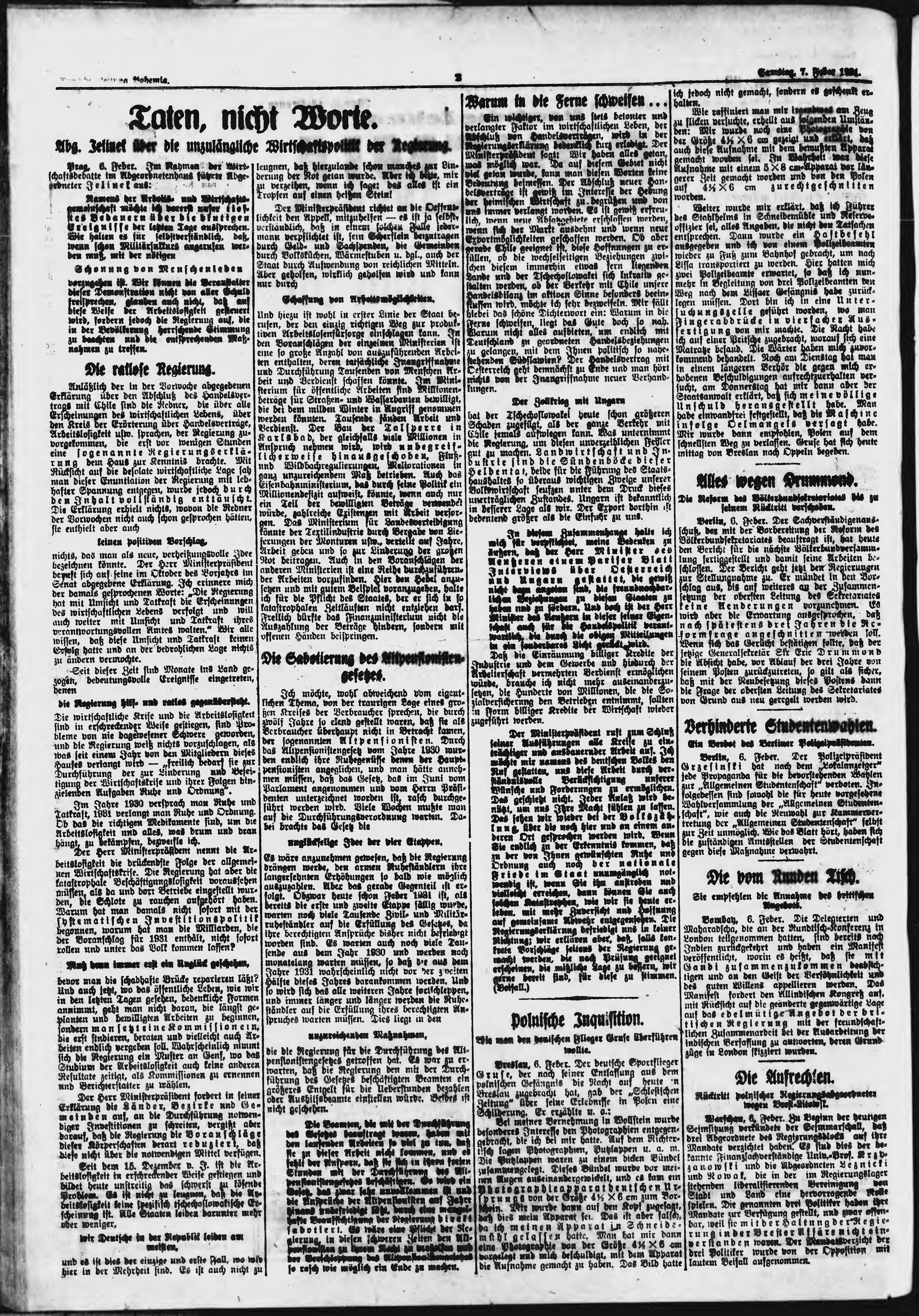 * Datum vydání výtisku: 7.2.1931 Číslo výtisku: 33 Poznámky k výtisku: ranní vydání;