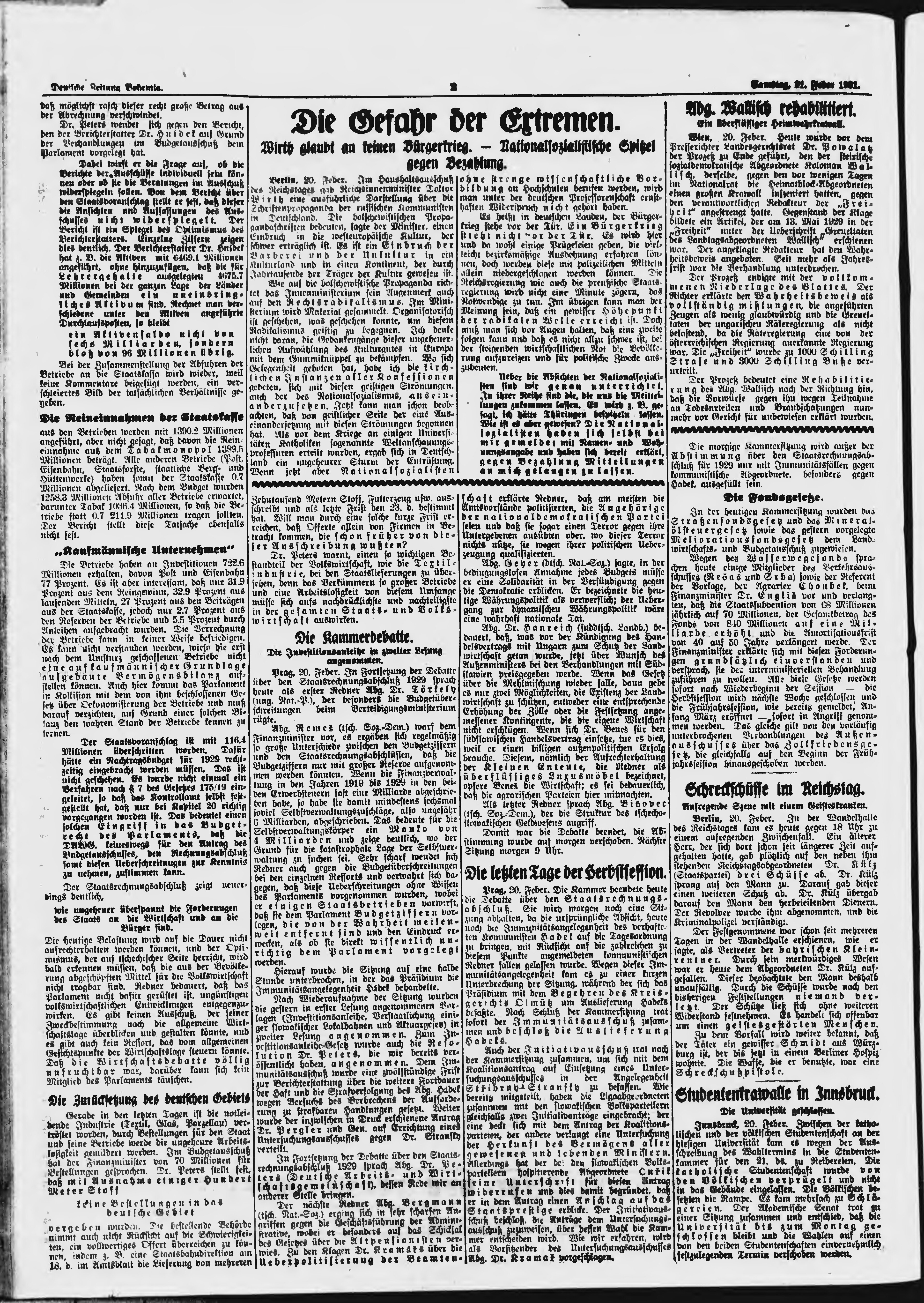 * Datum vydání výtisku: 21.2.1931 Číslo výtisku: 45 Poznámky k výtisku: ranní vydání;