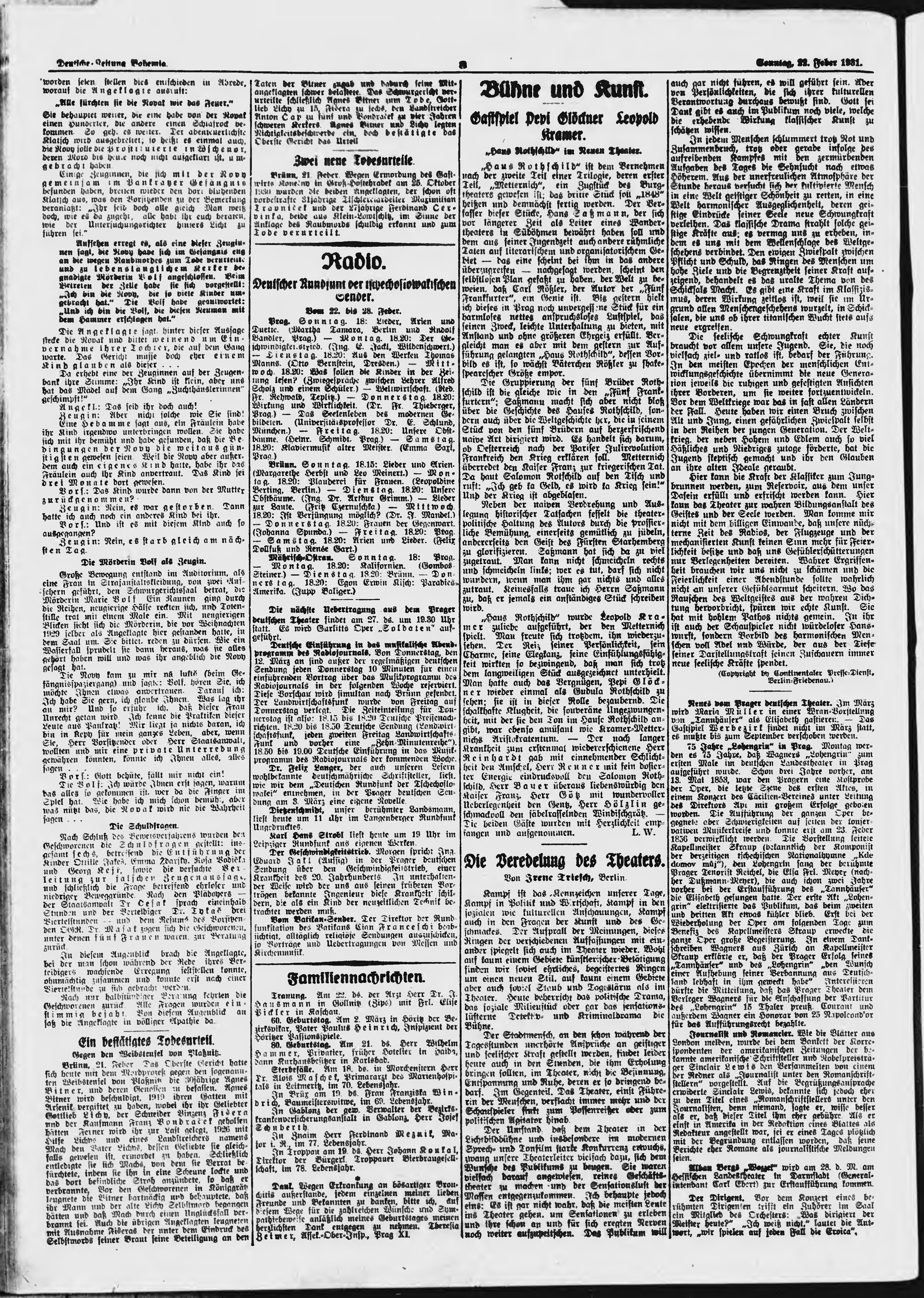 * Datum vydání výtisku: 22.2.1931 Číslo výtisku: 46 Poznámky k výtisku: ranní vydání;