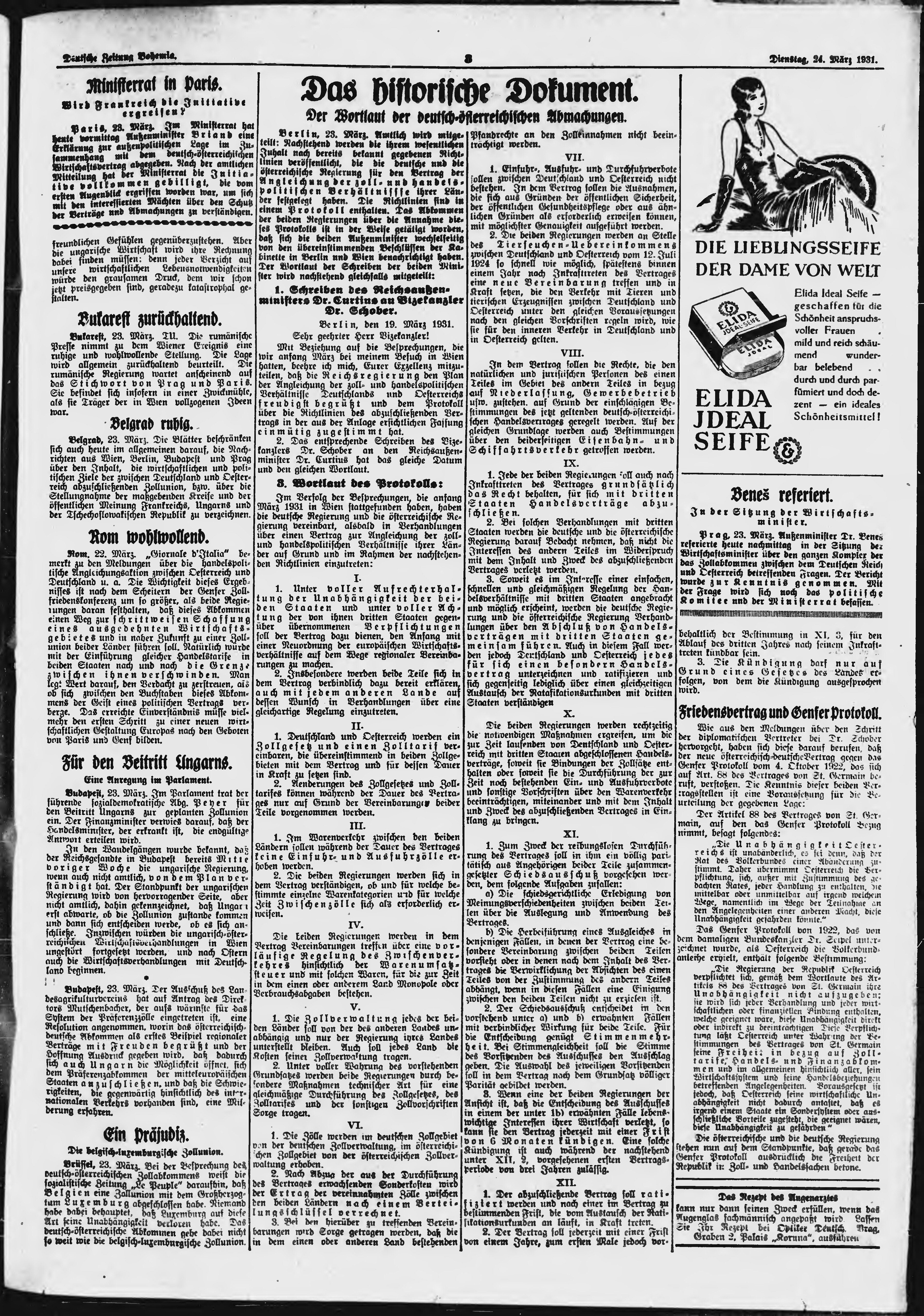 * Datum vydání výtisku: 24.3.1931 Číslo výtisku: 71 Poznámky k výtisku: ranní vydání;