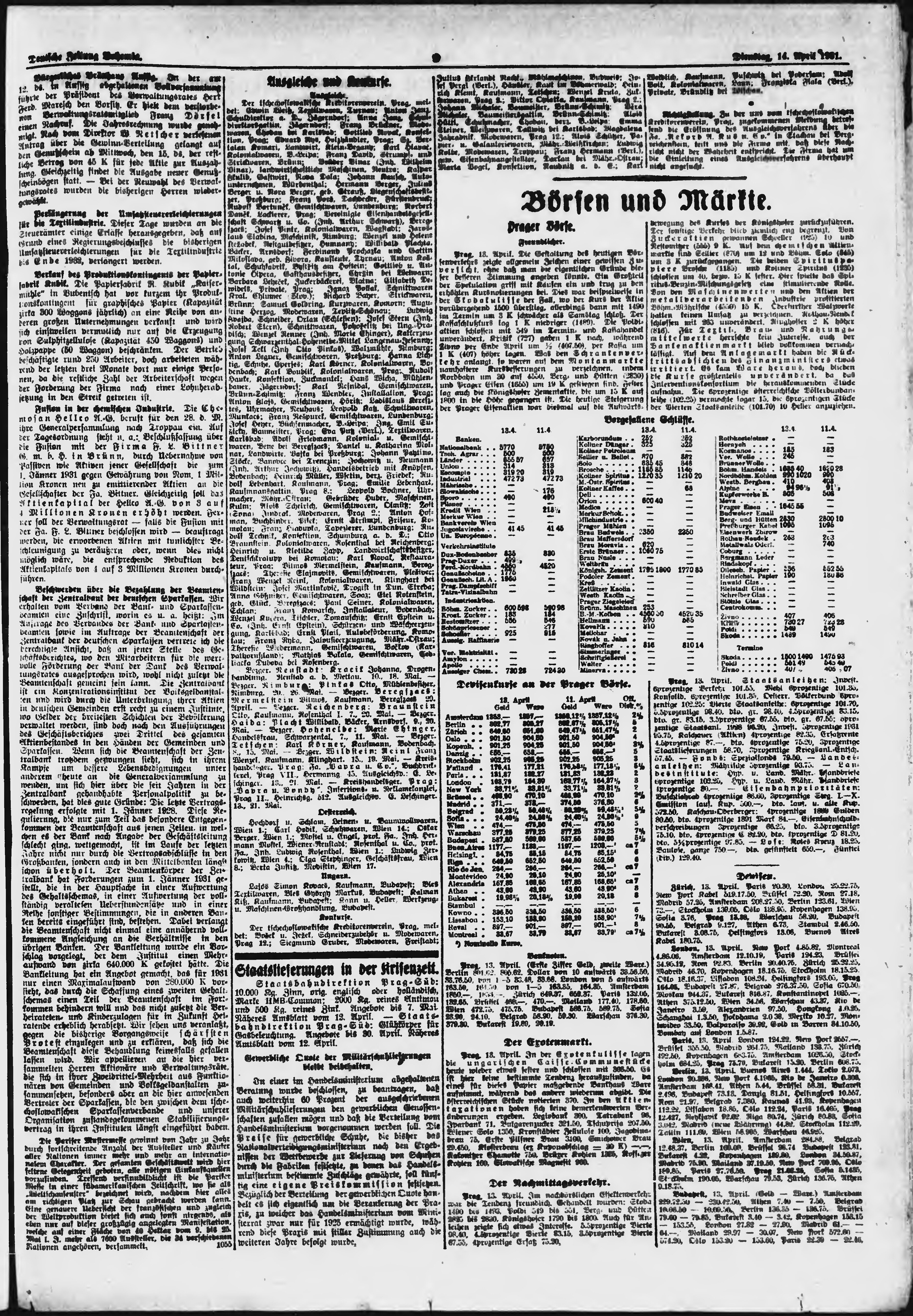 * Datum vydání výtisku: 14.4.1931 Číslo výtisku: 88 Poznámky k výtisku: ranní vydání;