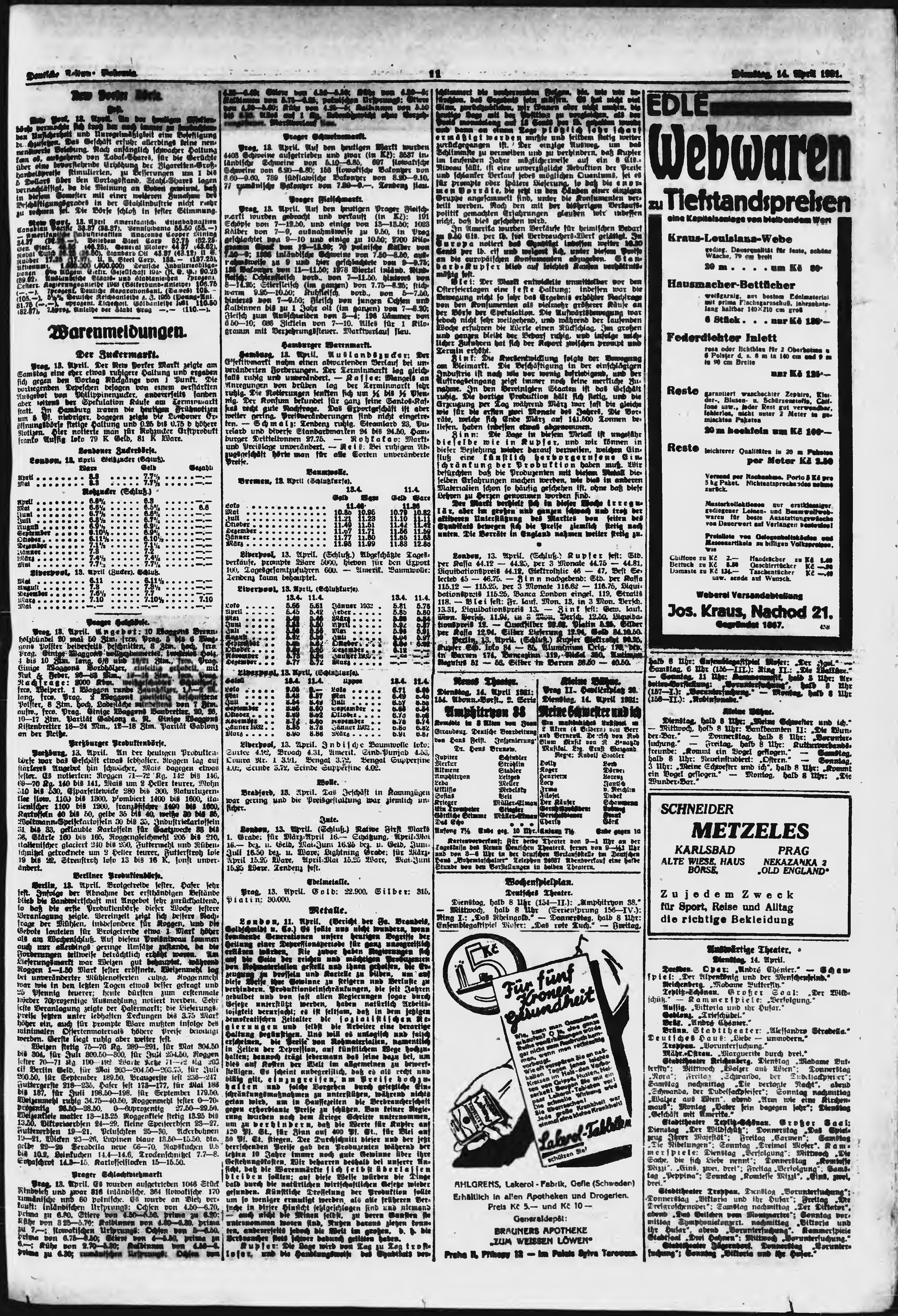 * Datum vydání výtisku: 14.4.1931 Číslo výtisku: 88 Poznámky k výtisku: ranní vydání;