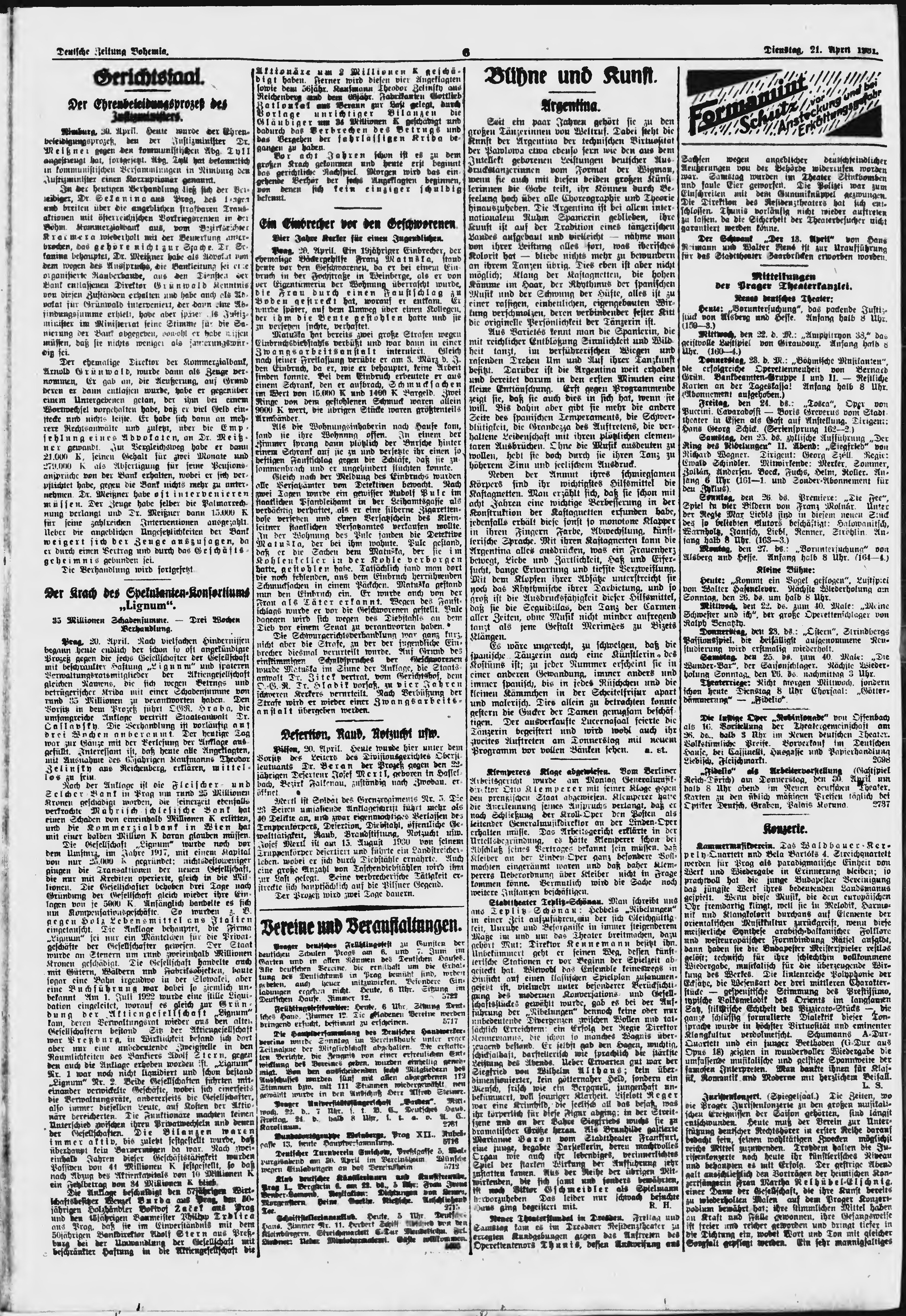 * Datum vydání výtisku: 21.4.1931 Číslo výtisku: 94 Poznámky k výtisku: ranní vydání;