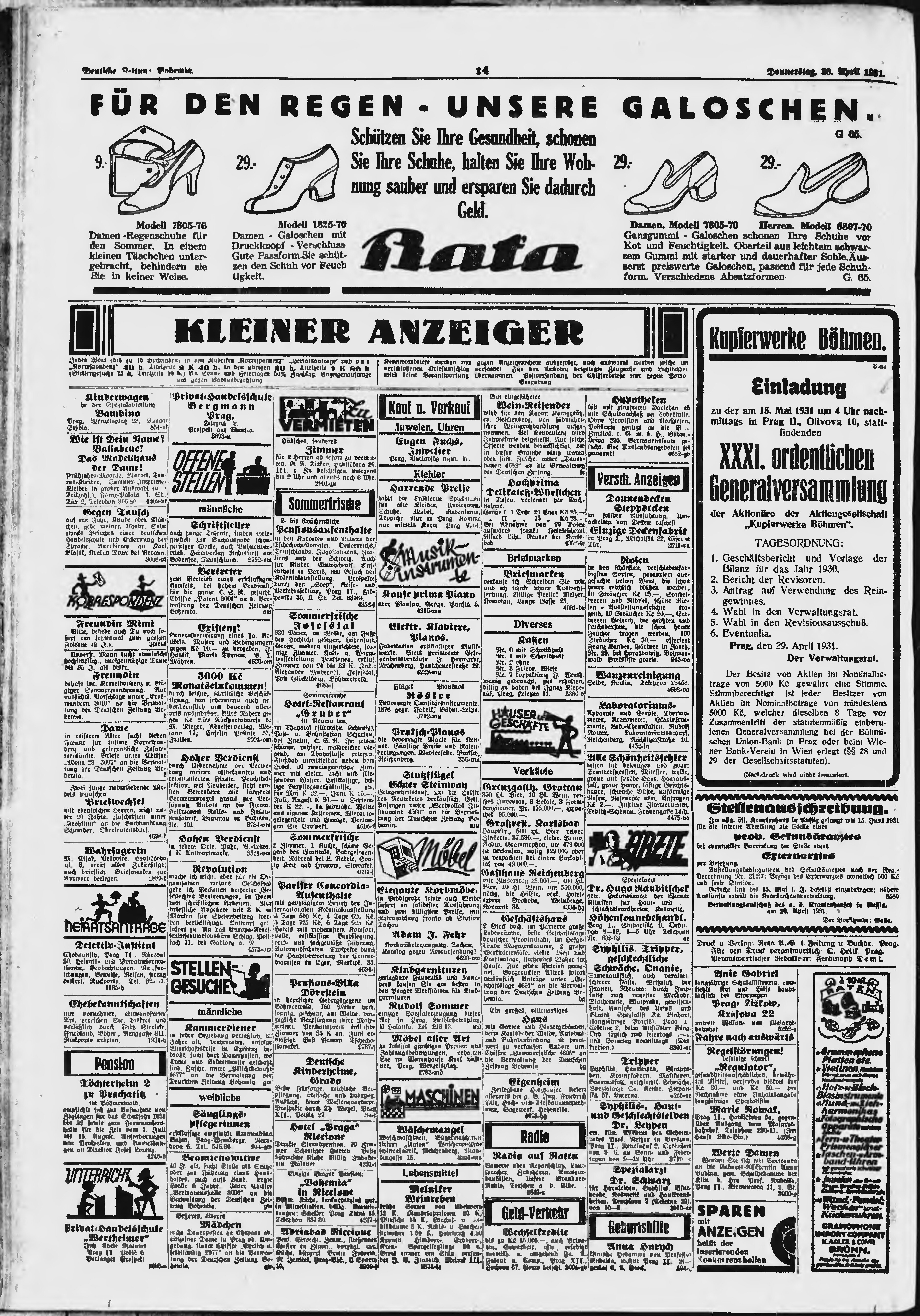 * Datum vydání výtisku: 30.4.1931 Číslo výtisku: 102 Poznámky k výtisku: ranní vydání;