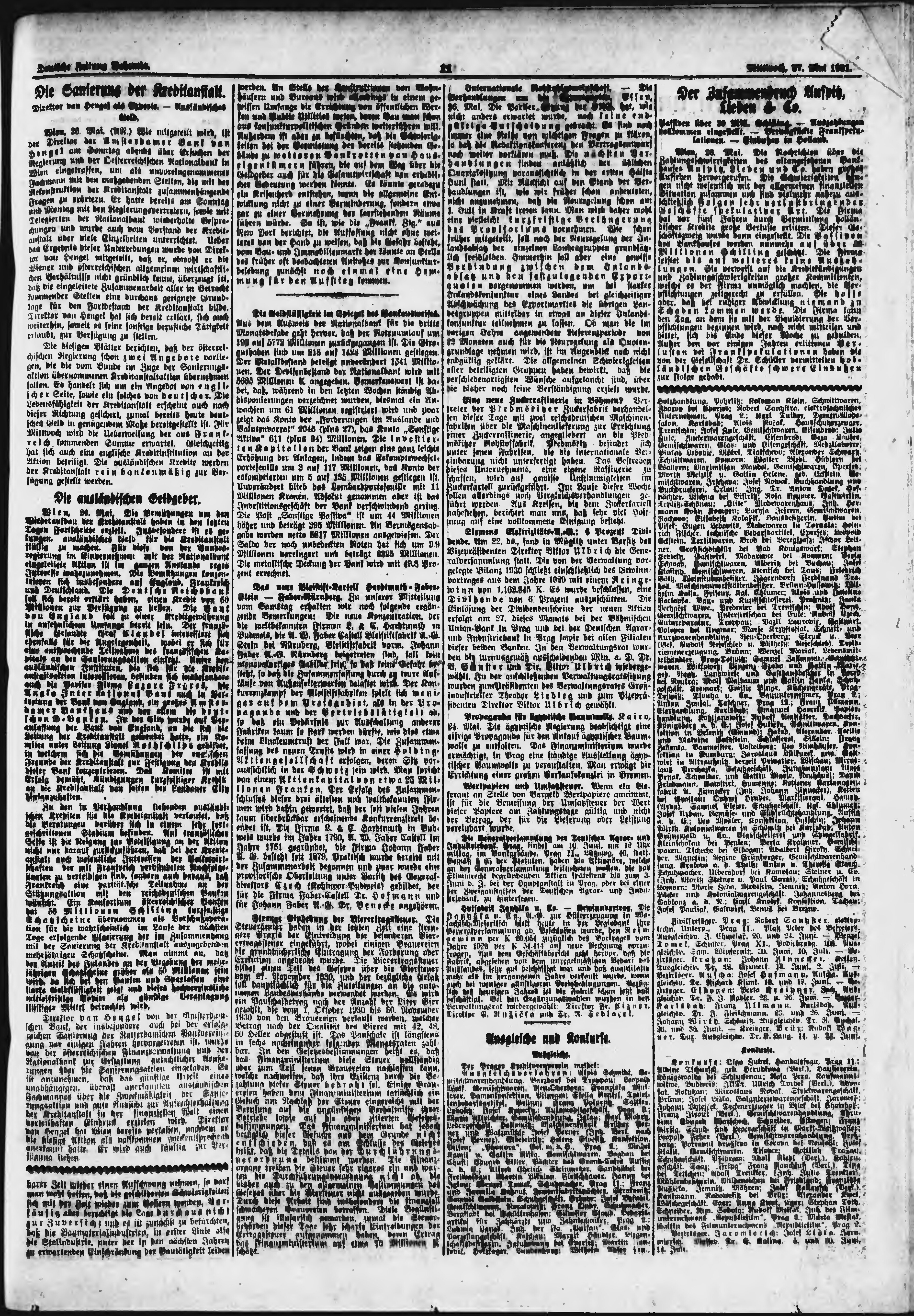 * Datum vydání výtisku: 27.5.1931 Číslo výtisku: 123 Poznámky k výtisku: ranní vydání;