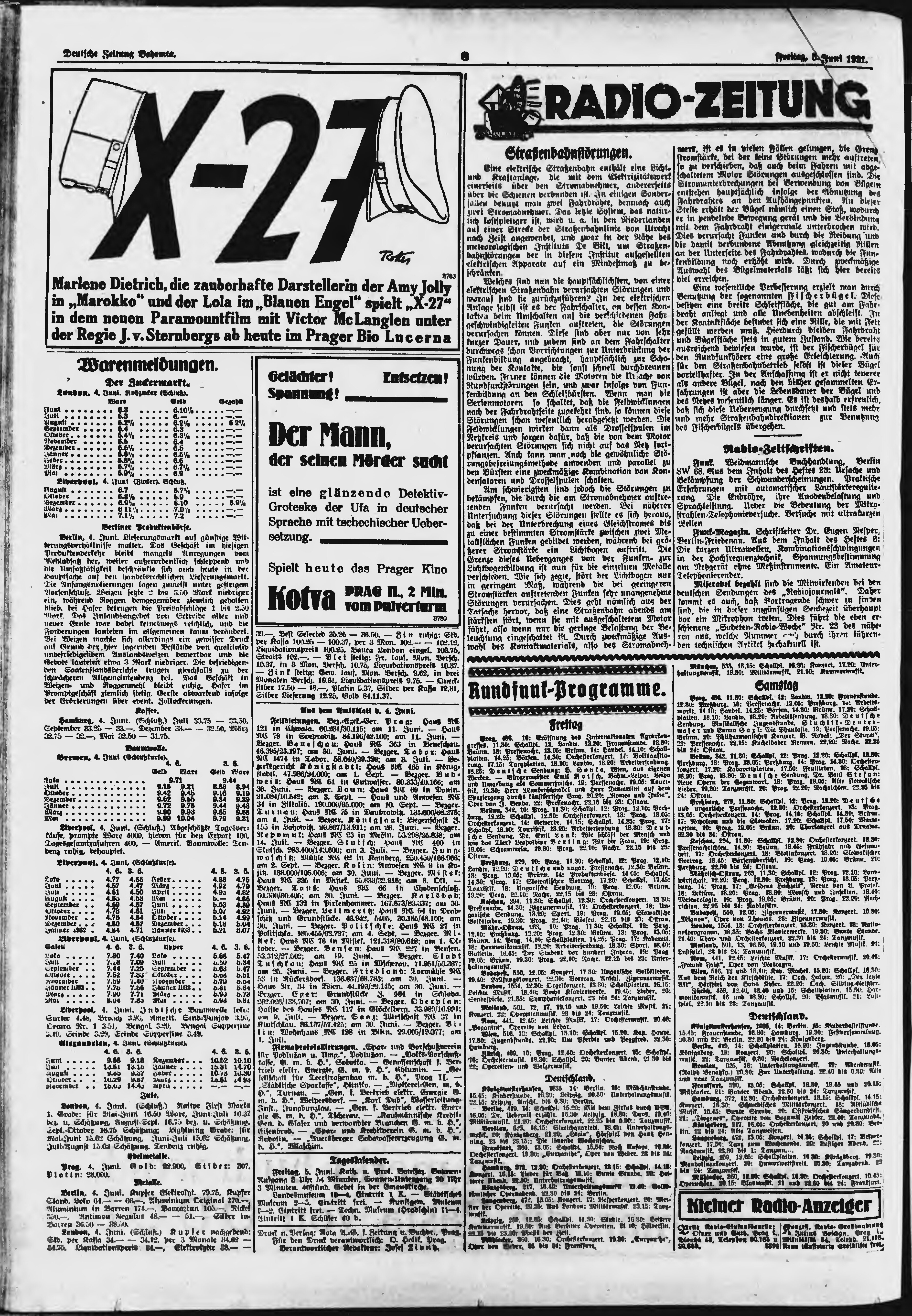 * Datum vydání výtisku: 5.6.1931 Číslo výtisku: 131 Poznámky k výtisku: ranní vydání;