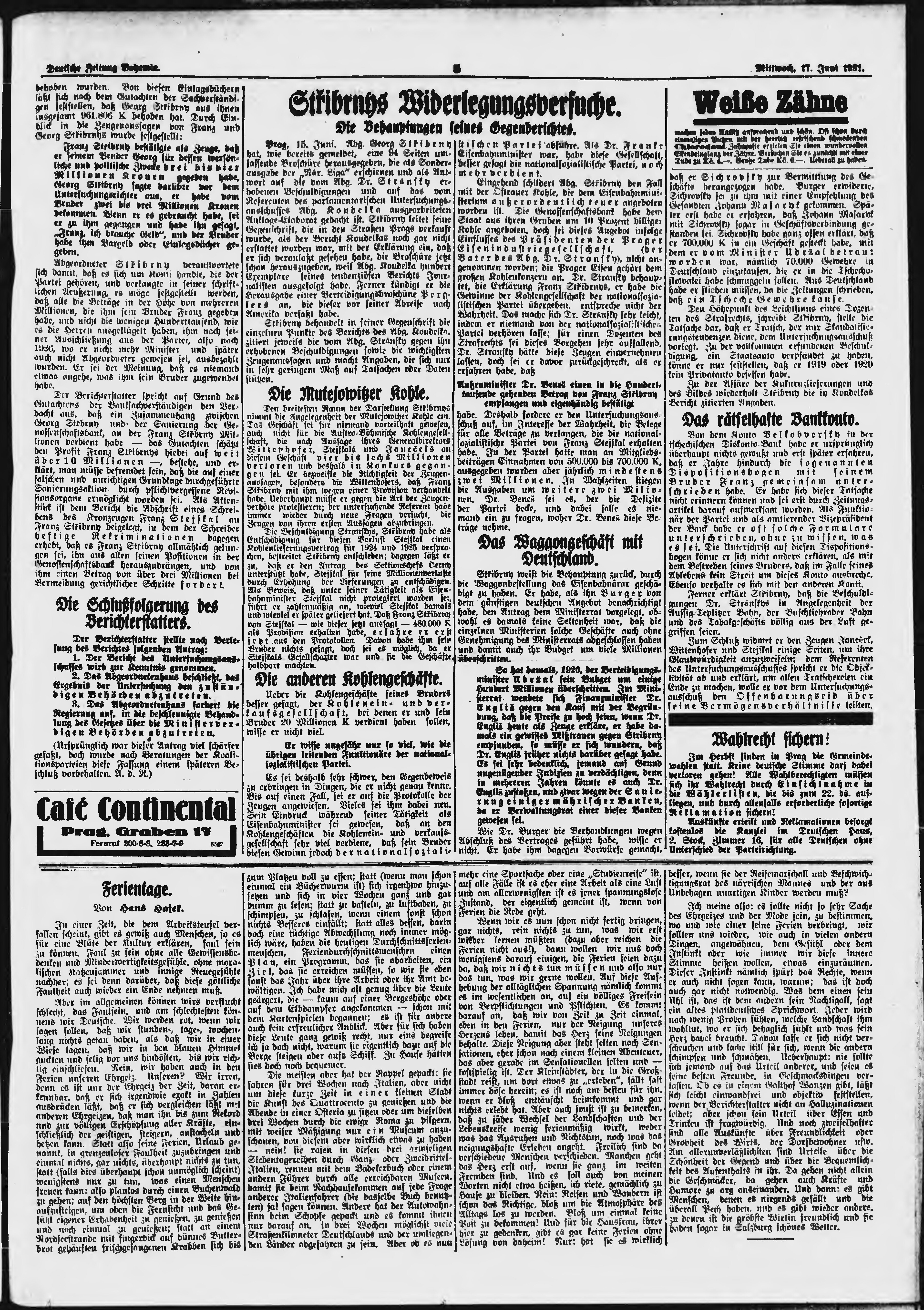 * Datum vydání výtisku: 17.6.1931 Číslo výtisku: 141 Poznámky k výtisku: ranní vydání;