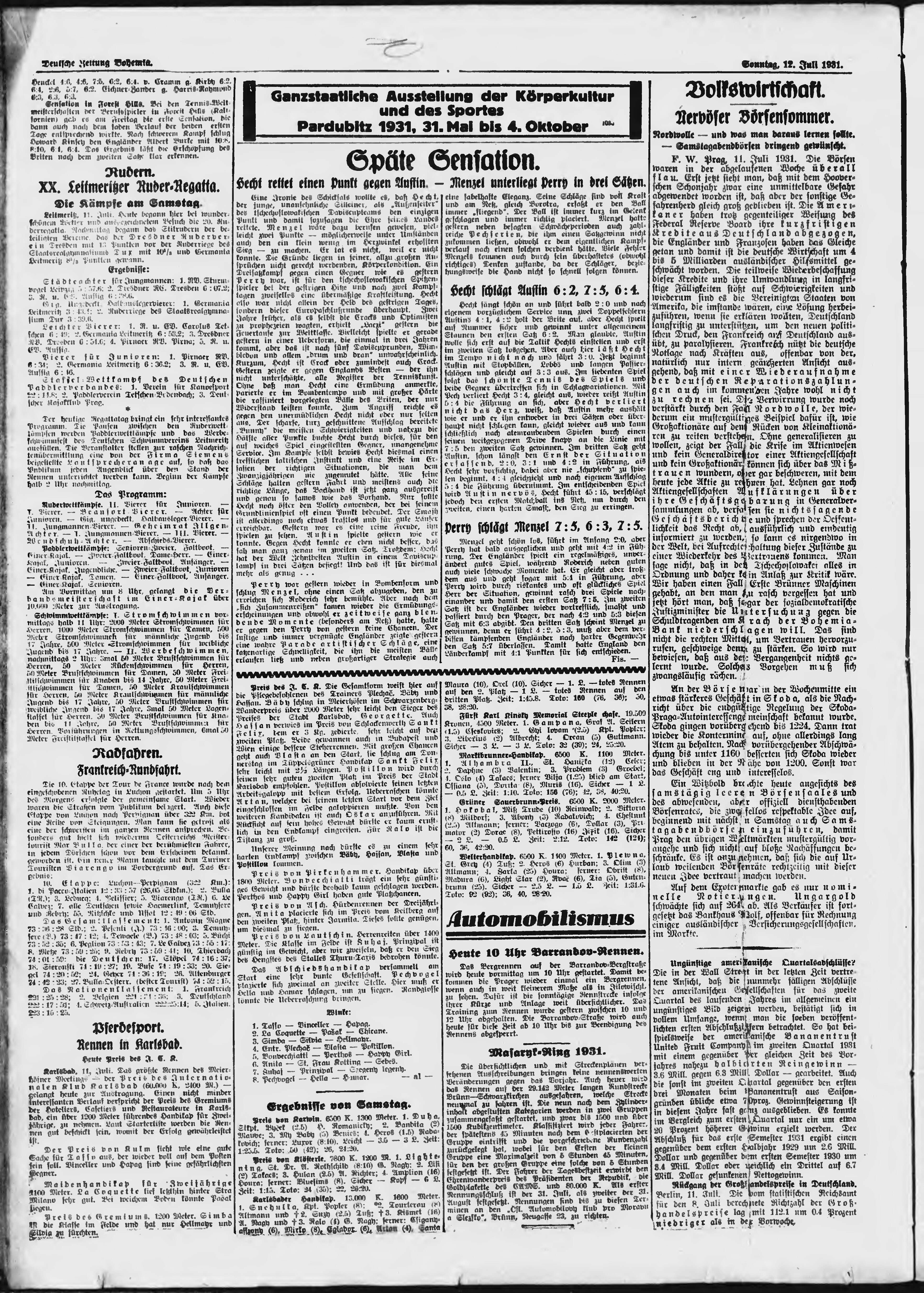 * Datum vydání výtisku: 12.7.1931 Číslo výtisku: 161 Poznámky k výtisku: ranní vydání; s. [9 a 10] poškozená předloha;