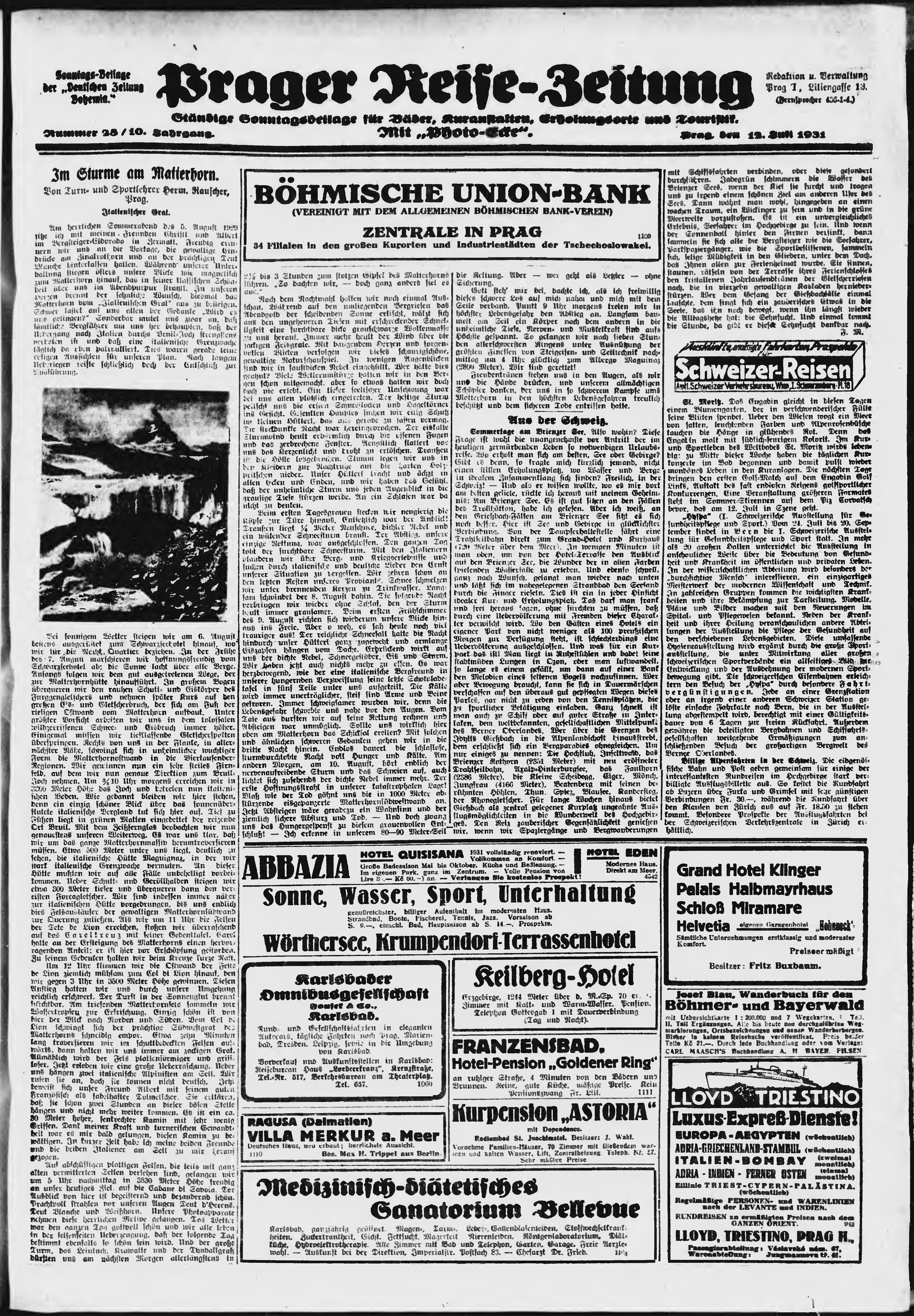 * Datum vydání výtisku: 12.7.1931 Číslo výtisku: 161 Poznámky k výtisku: ranní vydání; s. [9 a 10] poškozená předloha;