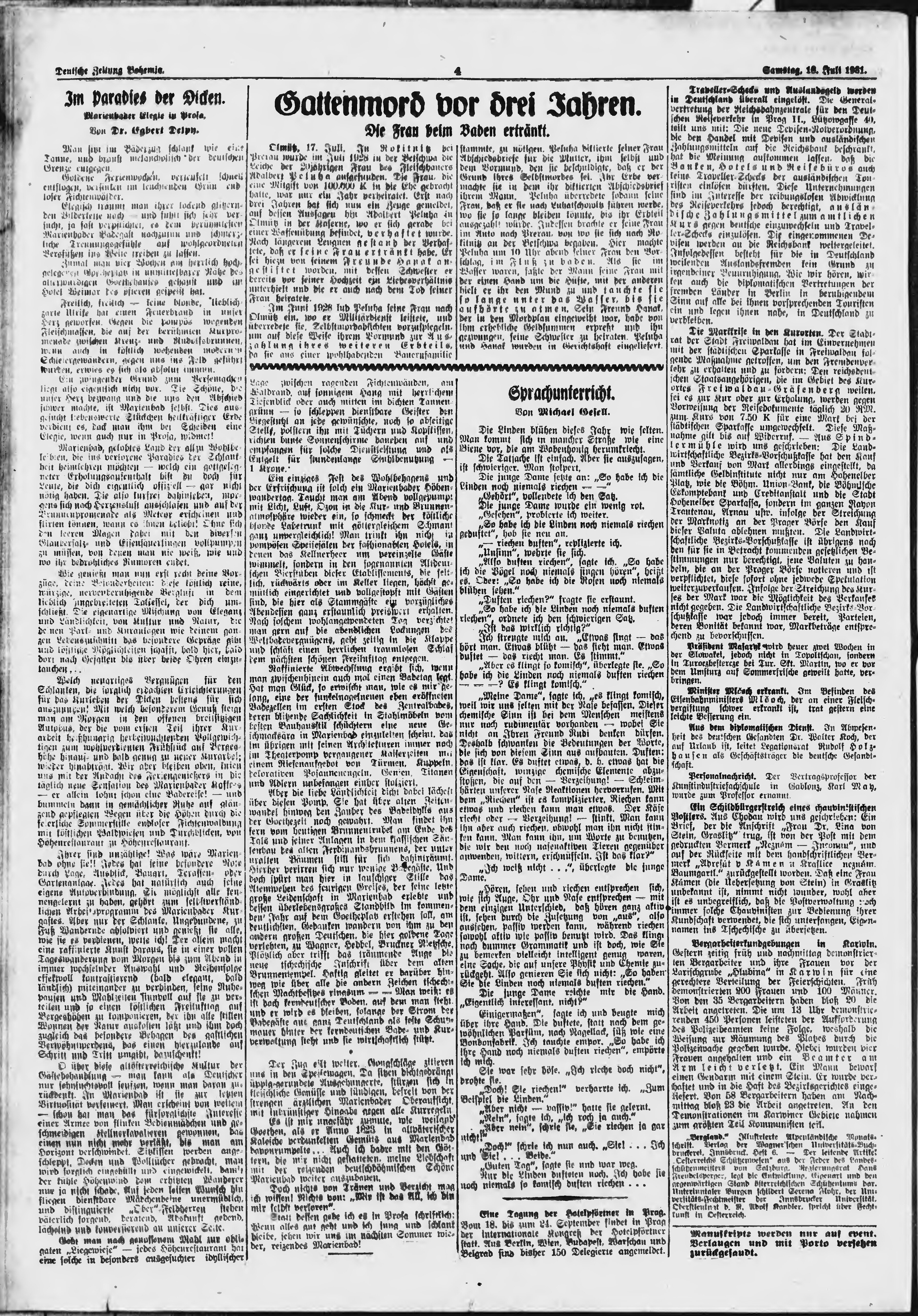 * Datum vydání výtisku: 18.7.1931 Číslo výtisku: 166 Poznámky k výtisku: ranní vydání;