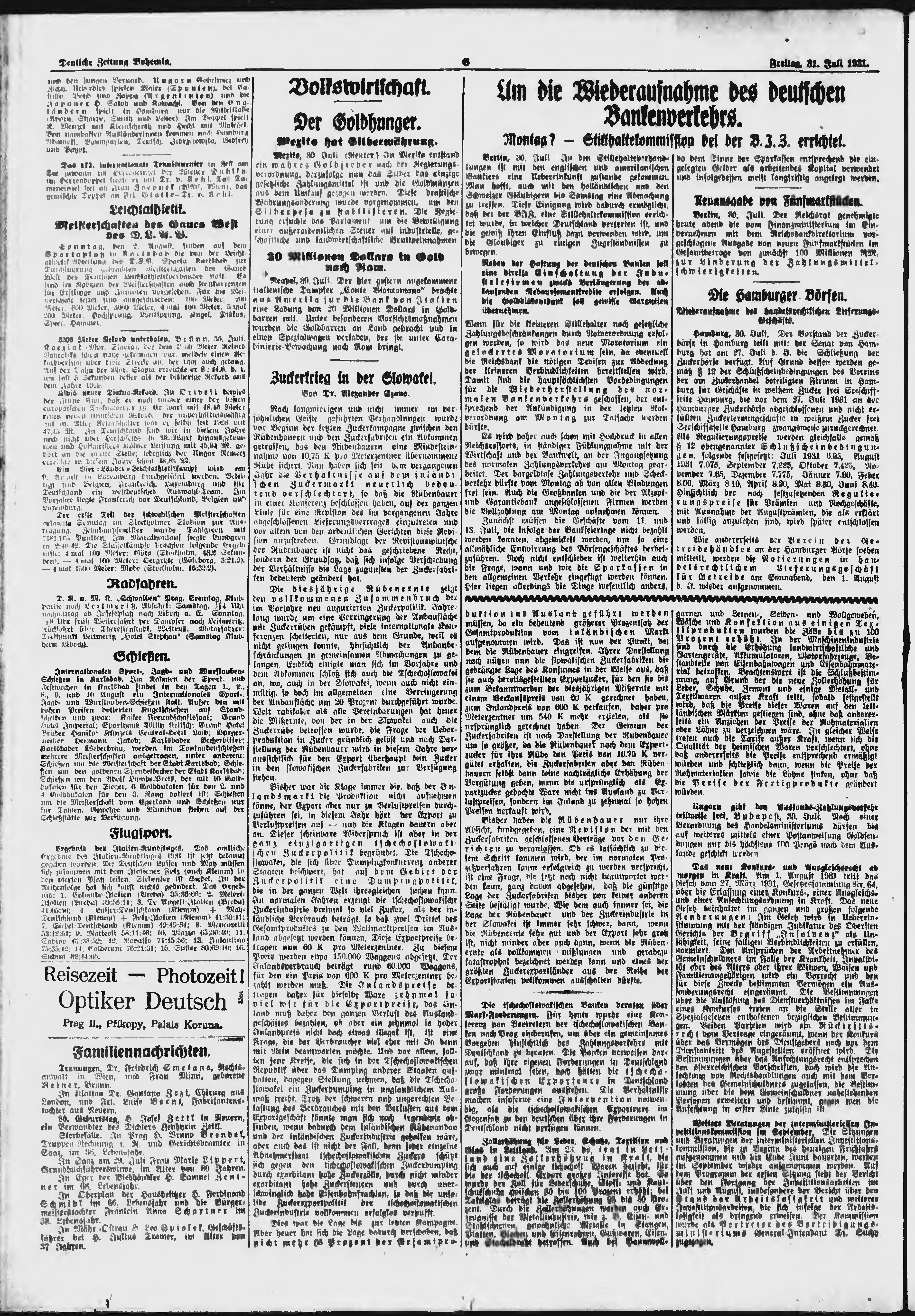 * Datum vydání výtisku: 31.7.1931 Číslo výtisku: 177 Poznámky k výtisku: ranní vydání;