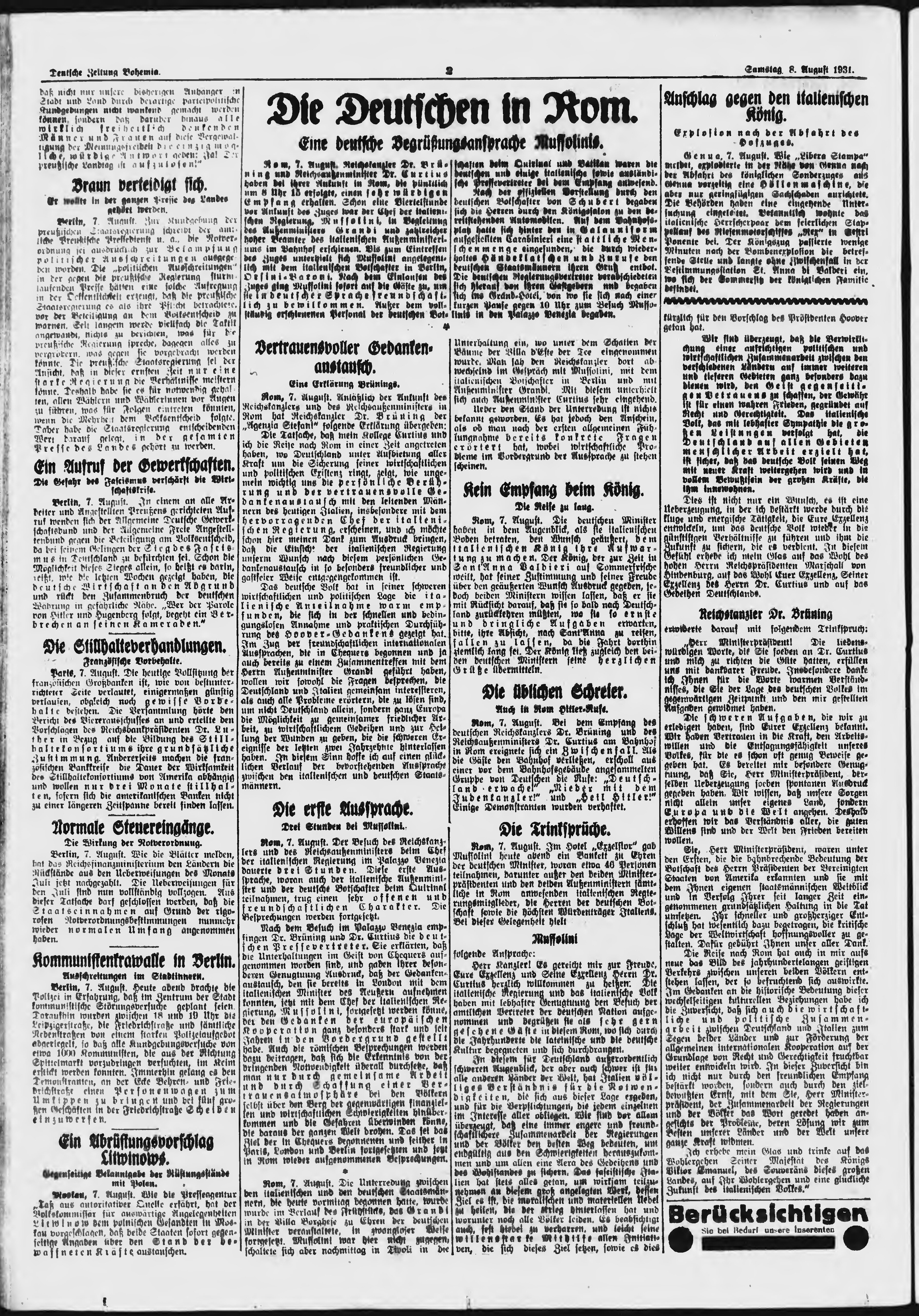 * Datum vydání výtisku: 8.8.1931 Číslo výtisku: 184 Poznámky k výtisku: ranní vydání;