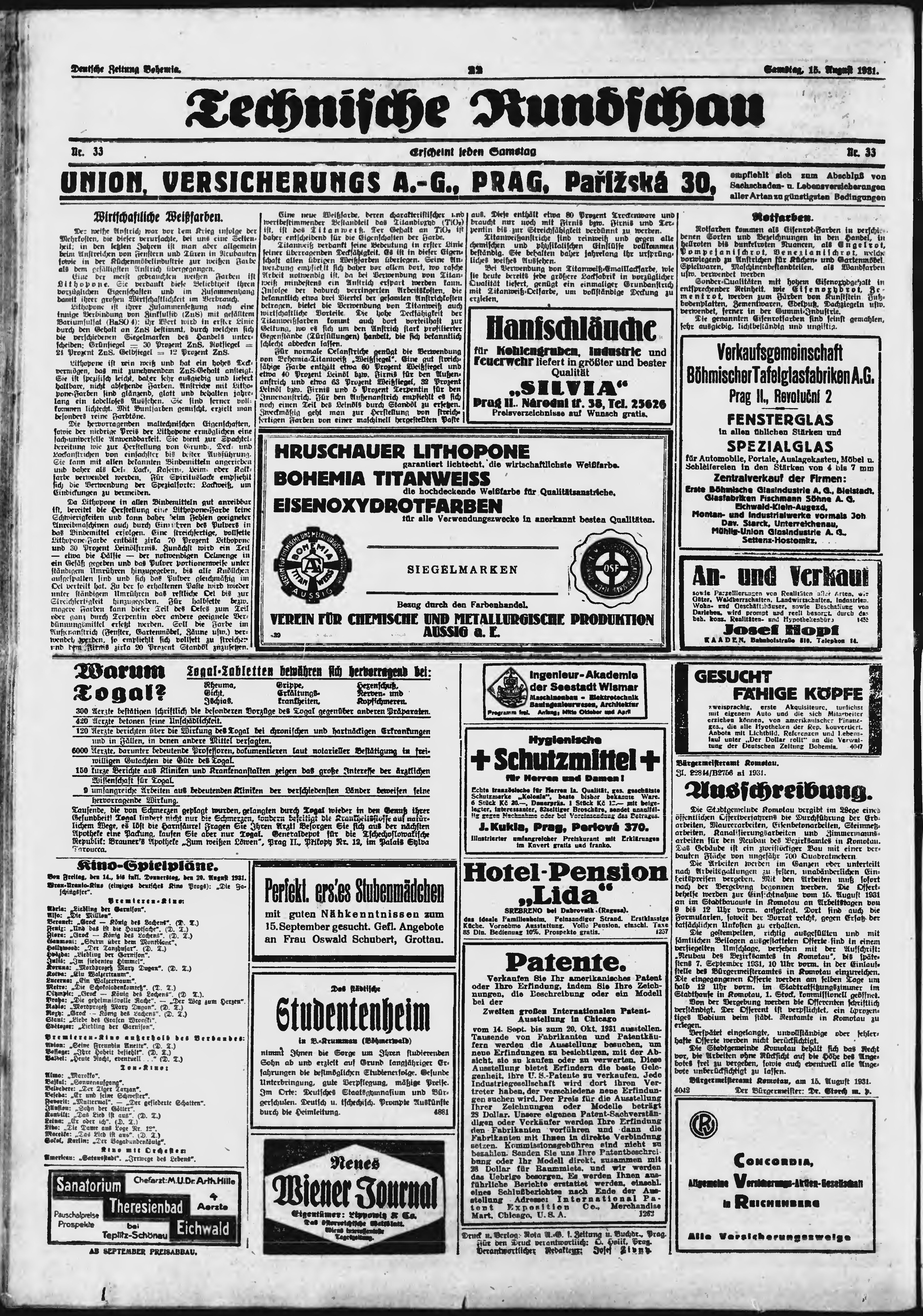 * Datum vydání výtisku: 15.8.1931 Číslo výtisku: 190 Poznámky k výtisku: ranní vydání;
