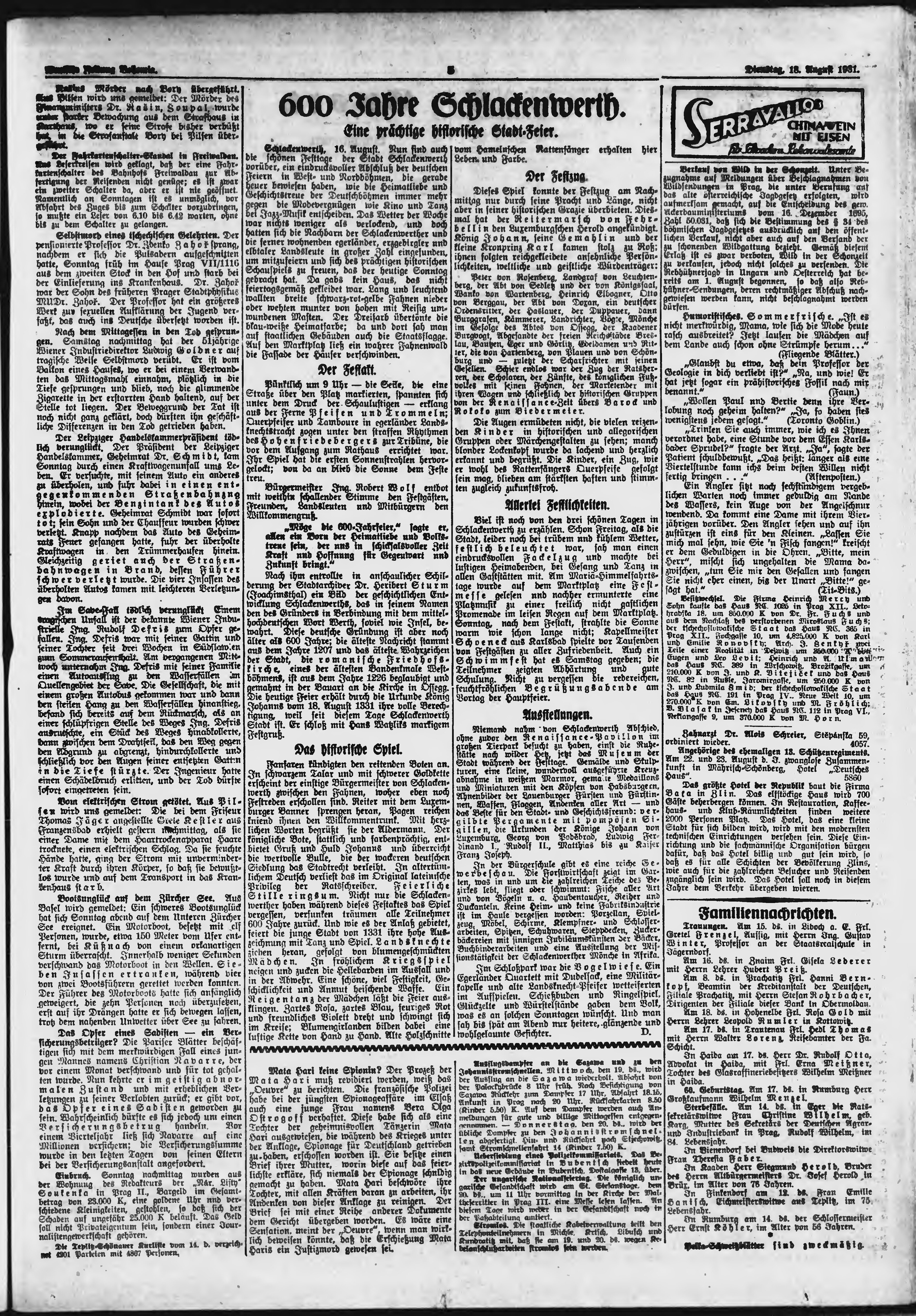 * Datum vydání výtisku: 18.8.1931 Číslo výtisku: 191 Poznámky k výtisku: ranní vydání;