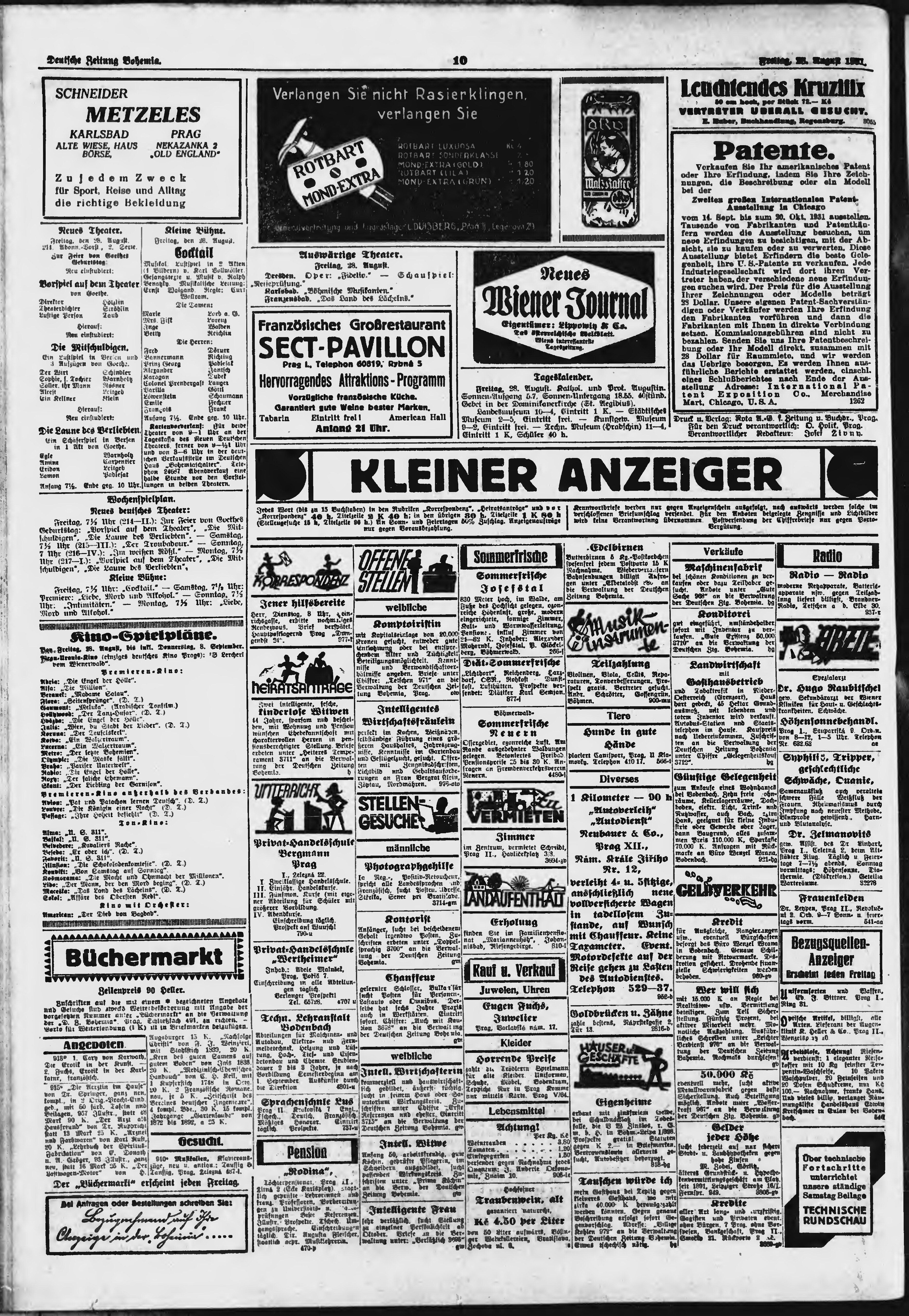 * Datum vydání výtisku: 28.8.1931 Číslo výtisku: 200 Poznámky k výtisku: ranní vydání;