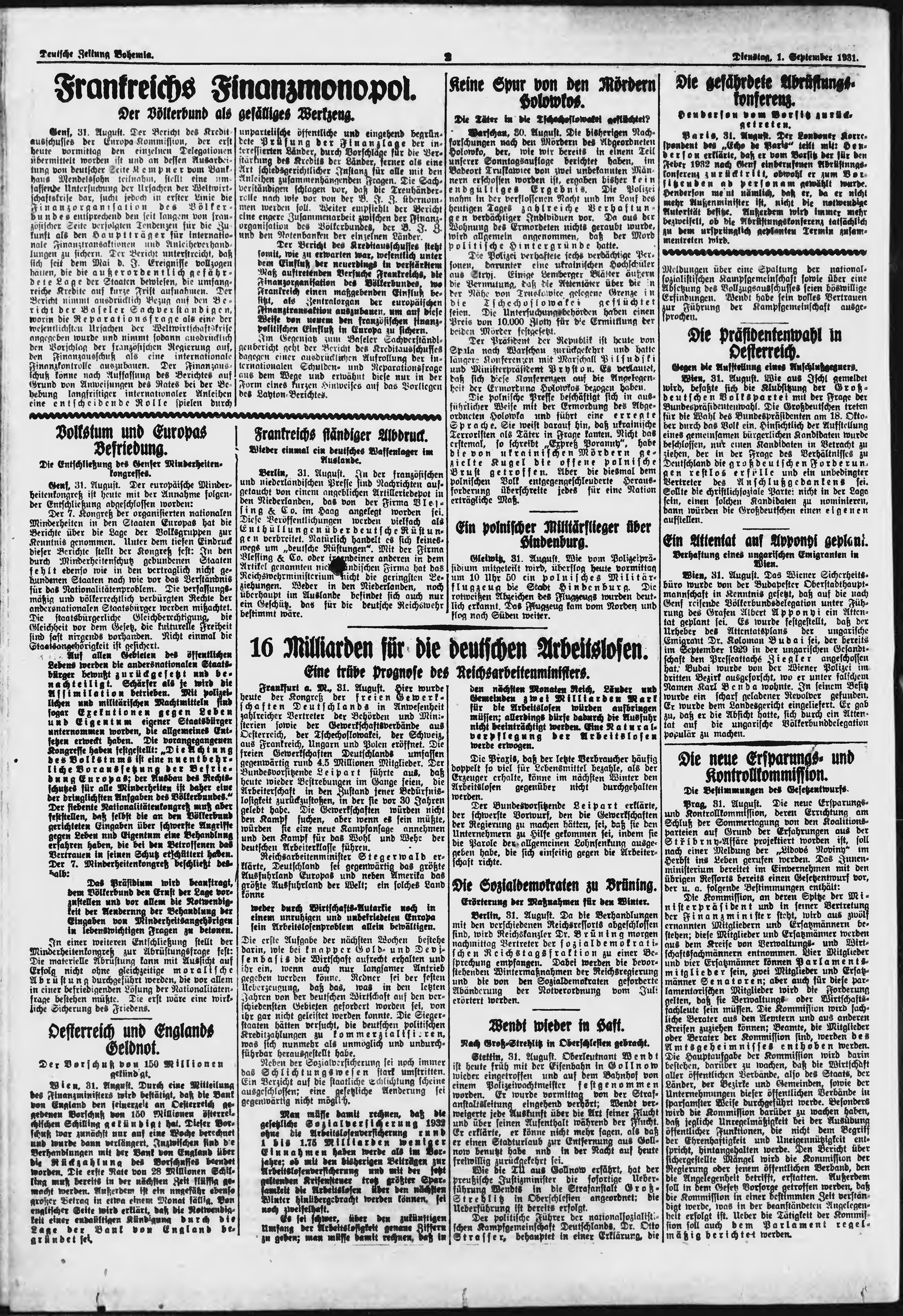 * Datum vydání výtisku: 1.9.1931 Číslo výtisku: 203 Poznámky k výtisku: ranní vydání;