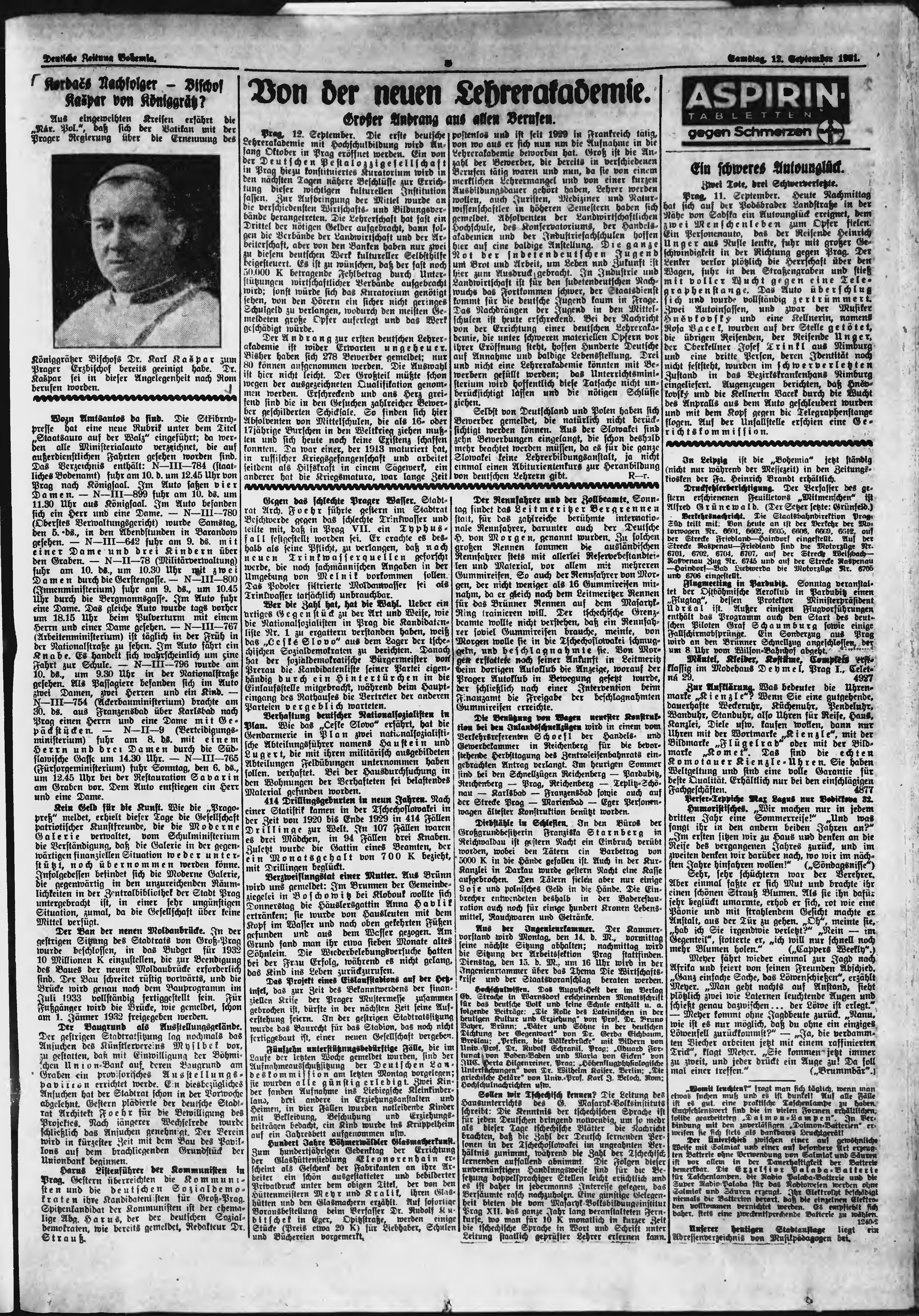 * Datum vydání výtisku: 12.9.1931 Číslo výtisku: 213 Poznámky k výtisku: ranní vydání;