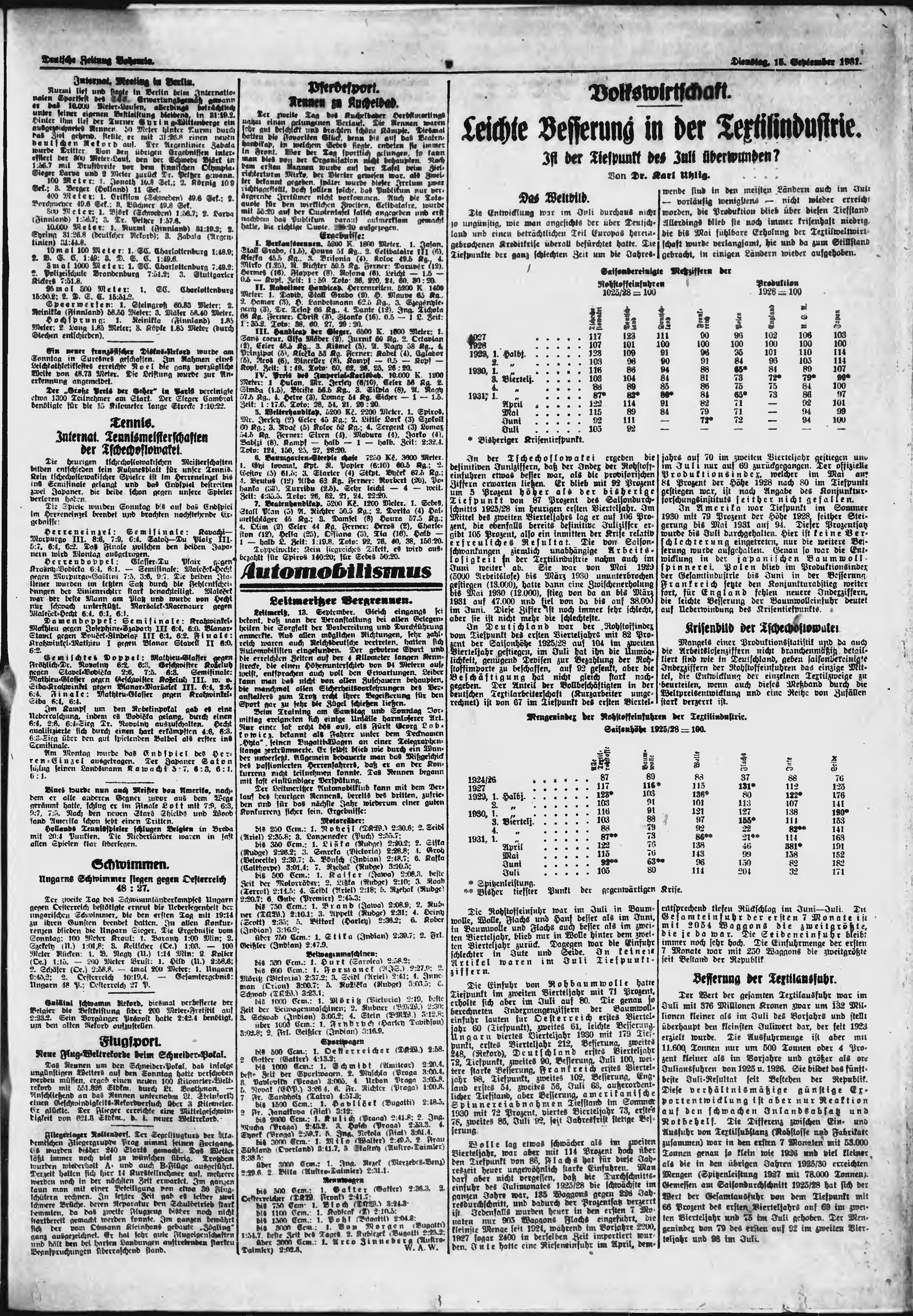 * Datum vydání výtisku: 15.9.1931 Číslo výtisku: 215 Poznámky k výtisku: ranní vydání;