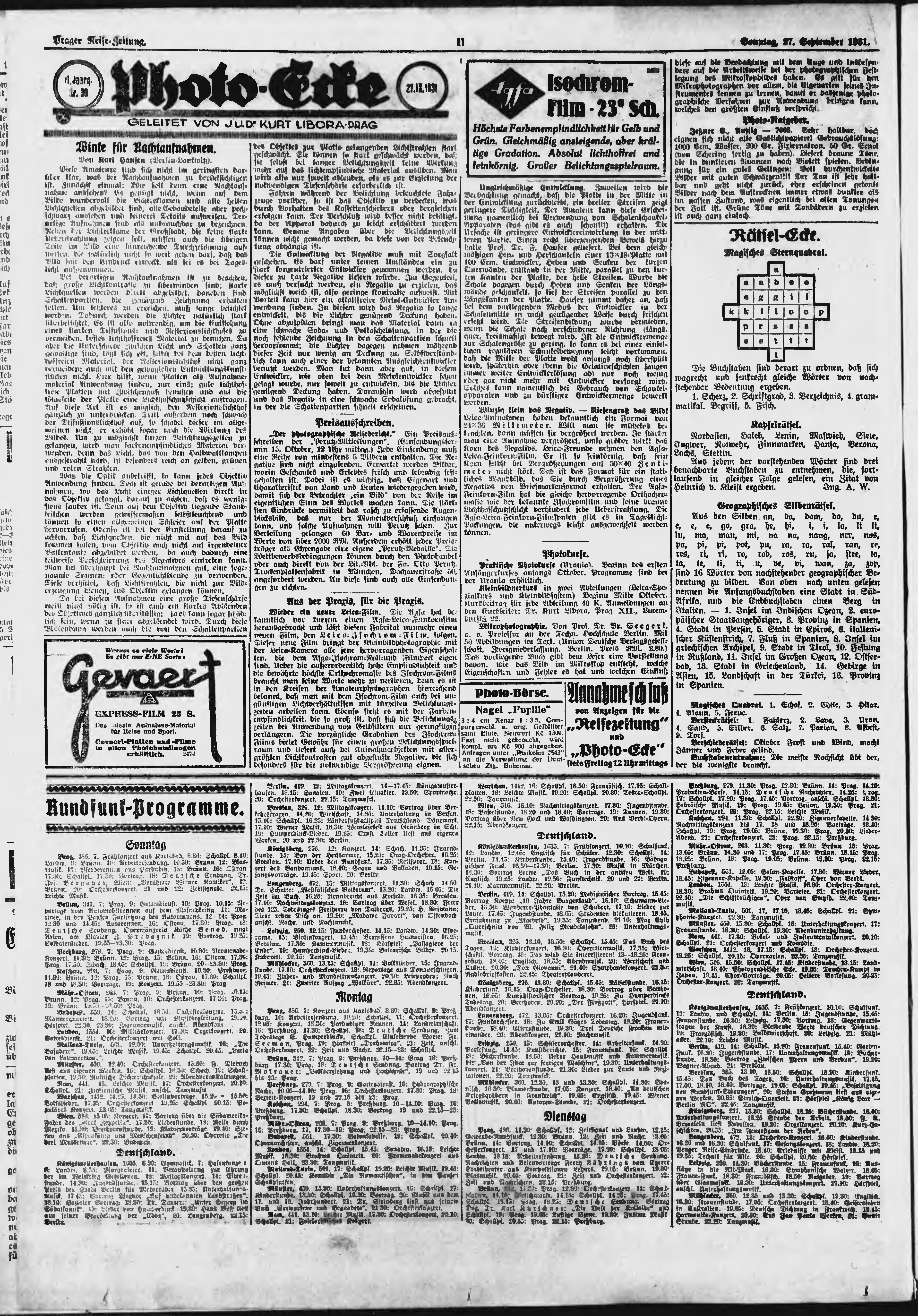 * Datum vydání výtisku: 27.9.1931 Číslo výtisku: 226 Poznámky k výtisku: ranní vydání;