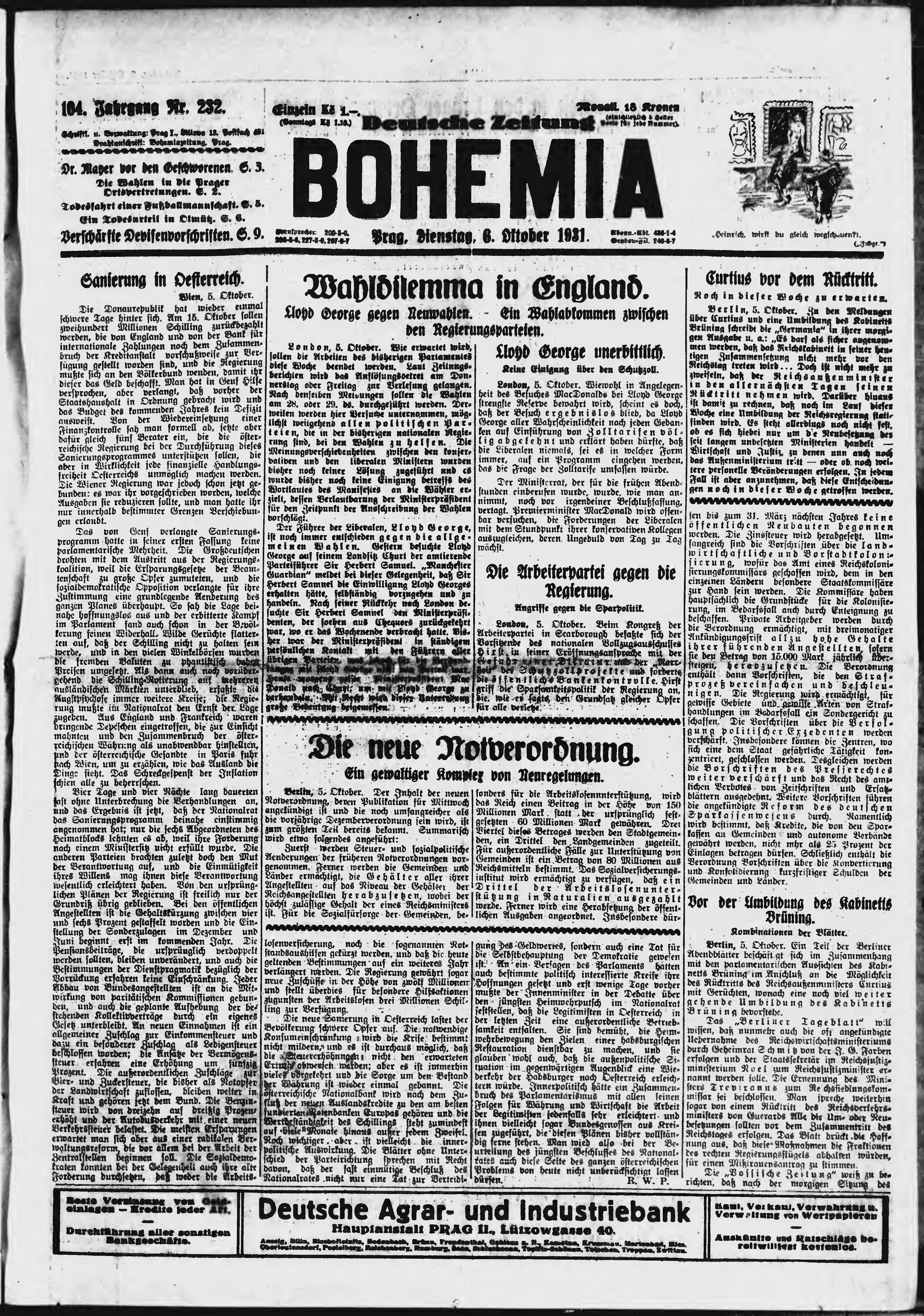 * Datum vydání výtisku: 6.10.1931 Číslo výtisku: 232 Poznámky k výtisku: ranní vydání;