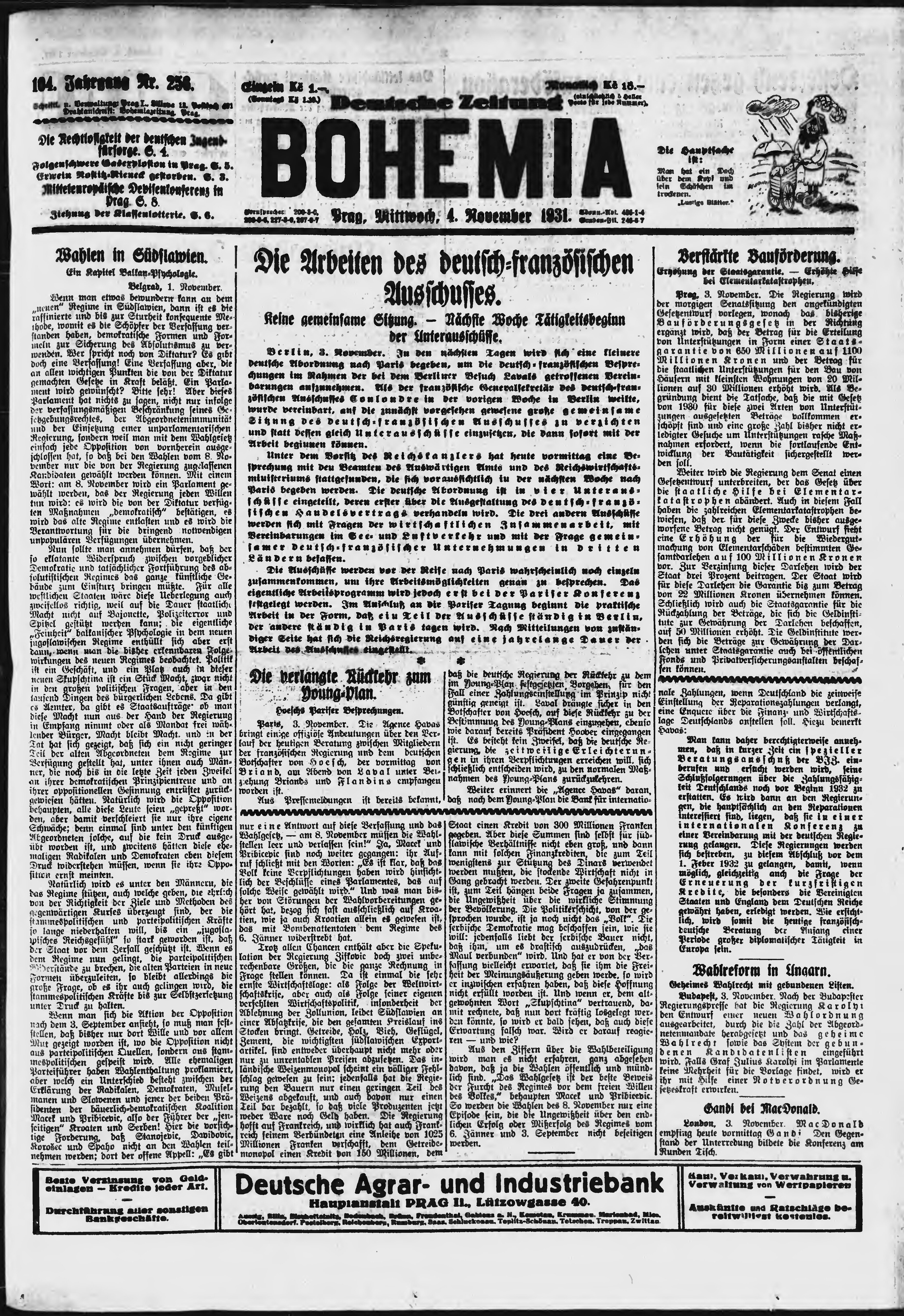 * Datum vydání výtisku: 4.11.1931 Číslo výtisku: 256 Poznámky k výtisku: ranní vydání;