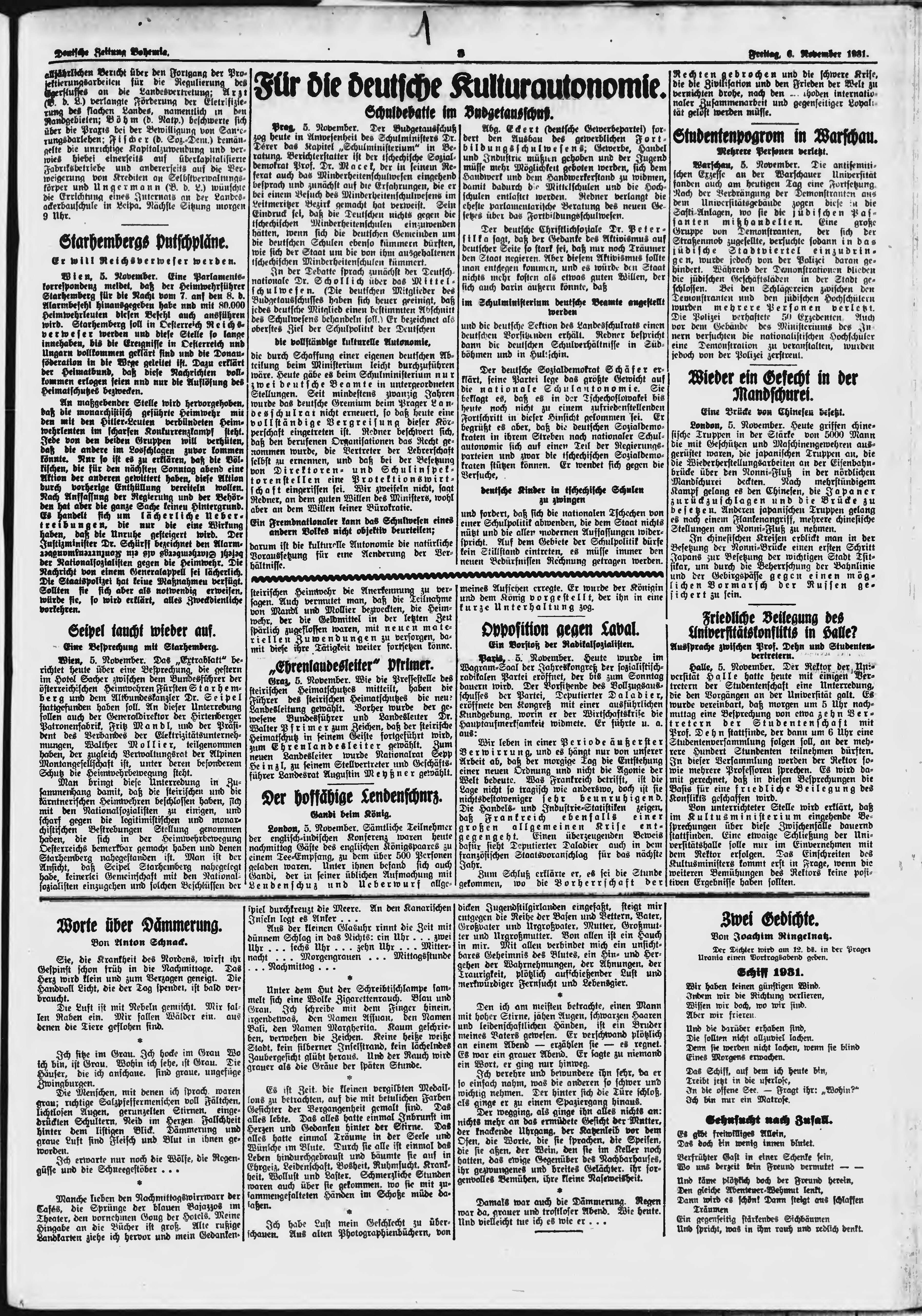 * Datum vydání výtisku: 6.11.1931 Číslo výtisku: 258 Poznámky k výtisku: ranní vydání;