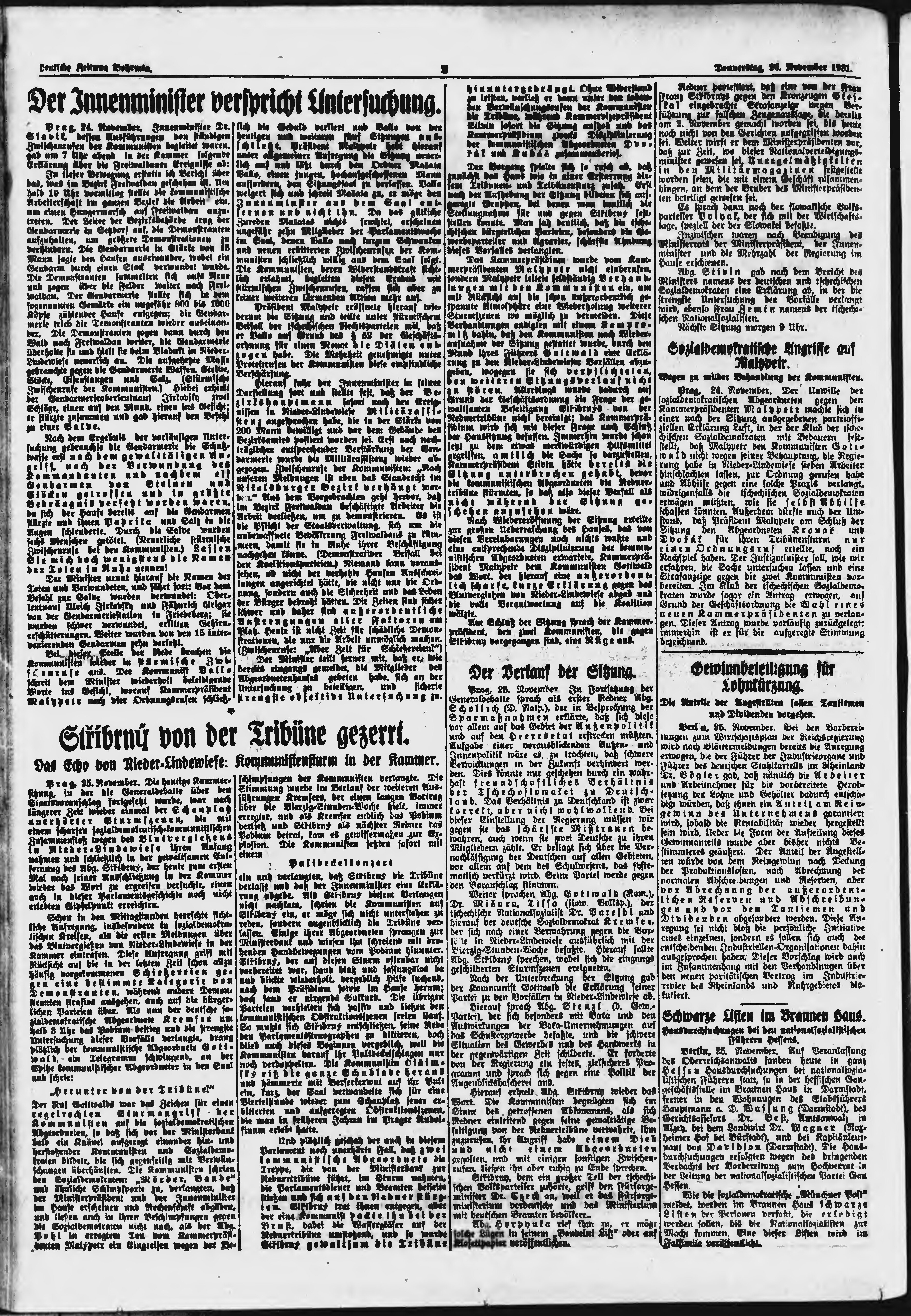 * Datum vydání výtisku: 26.11.1931 Číslo výtisku: 275 Poznámky k výtisku: ranní vydání;