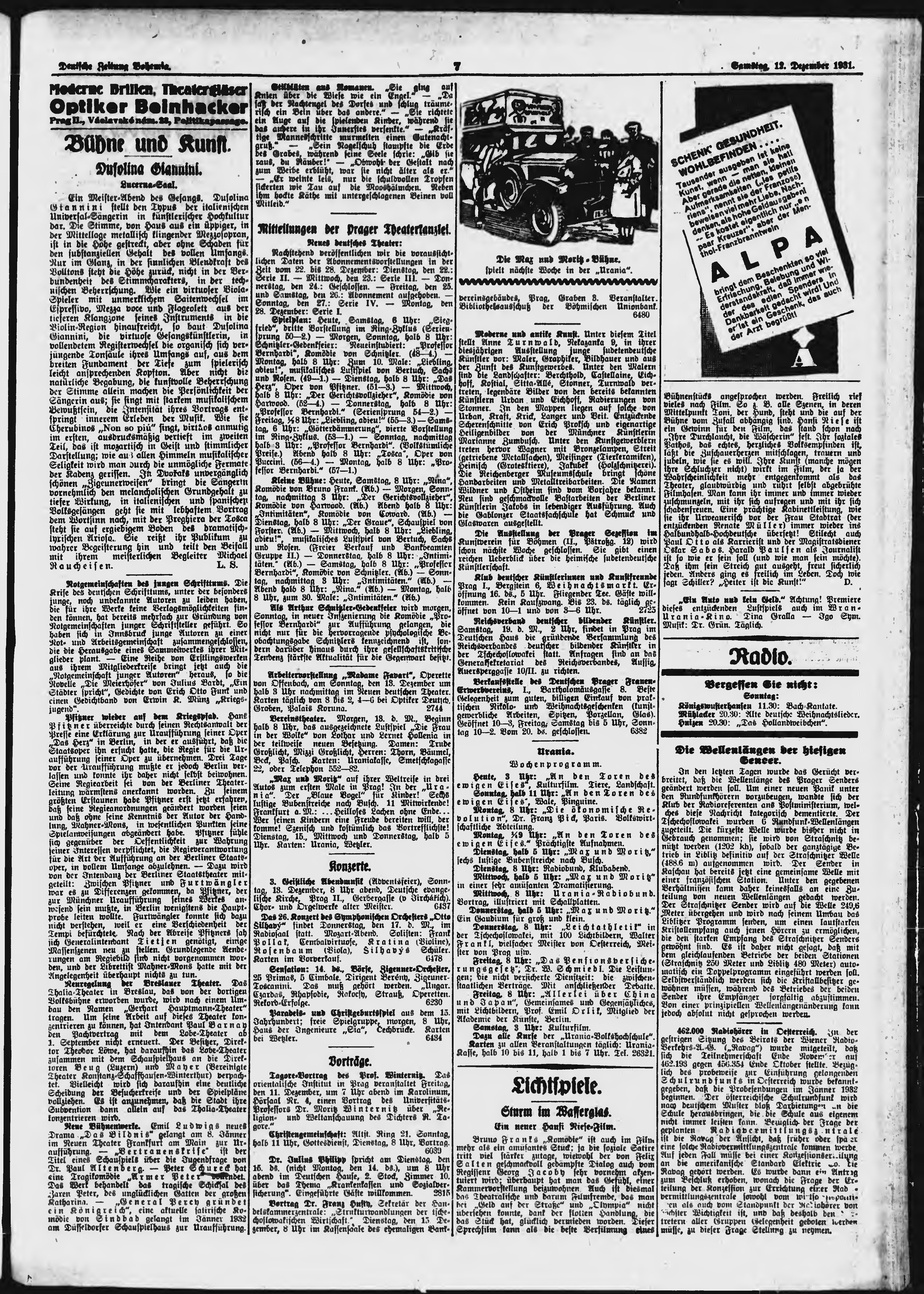* Datum vydání výtisku: 12.12.1931 Číslo výtisku: 289 Poznámky k výtisku: ranní vydání;