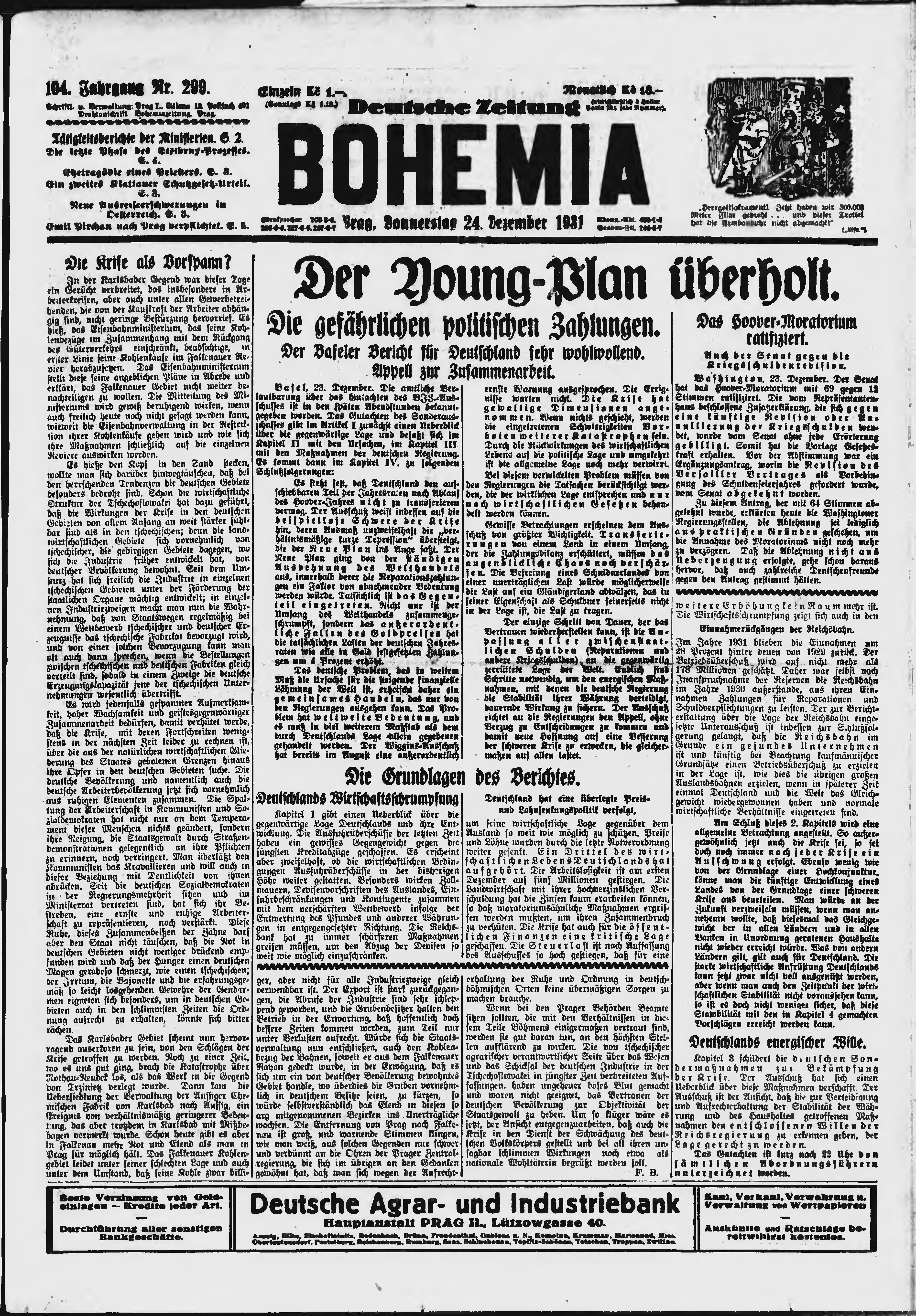 * Datum vydání výtisku: 24.12.1931 Číslo výtisku: 299 Poznámky k výtisku: ranní vydání;